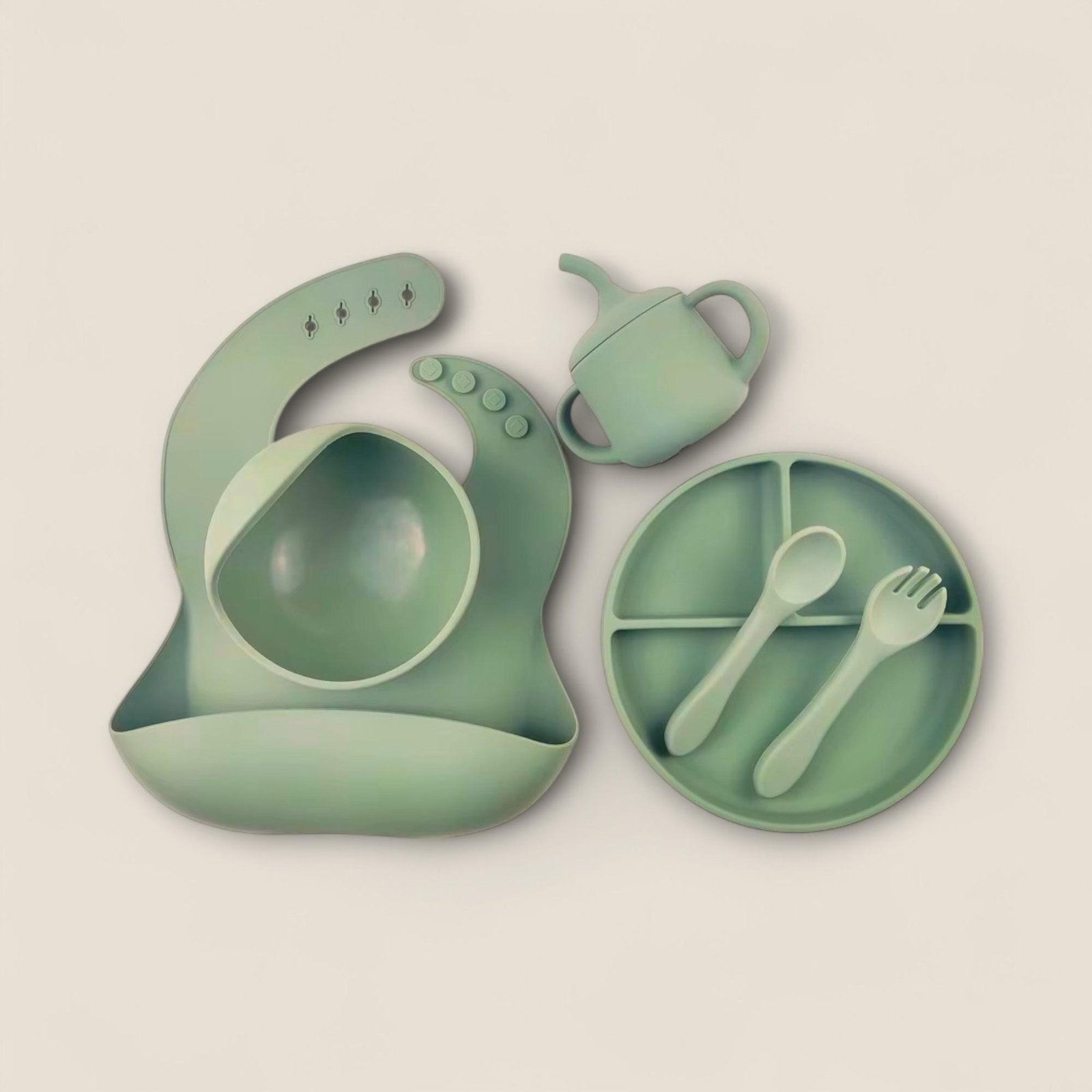 Your baby's mealtimes just got easier and more fun with the perfect silicone feeding set with the 5-Piece Silicone Baby Feeding Set