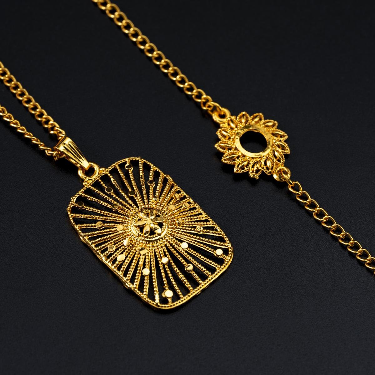 Add a touch of timeless elegance to your look with this collection of classic sun-patterned jewelry. Perfect for special occasions or a sophisticated everyday look, this collection features intricate sun designs and delicate details that shimmer with every movement. Crafted from high-quality materials, it gives you a luxurious look without the hefty price tag.