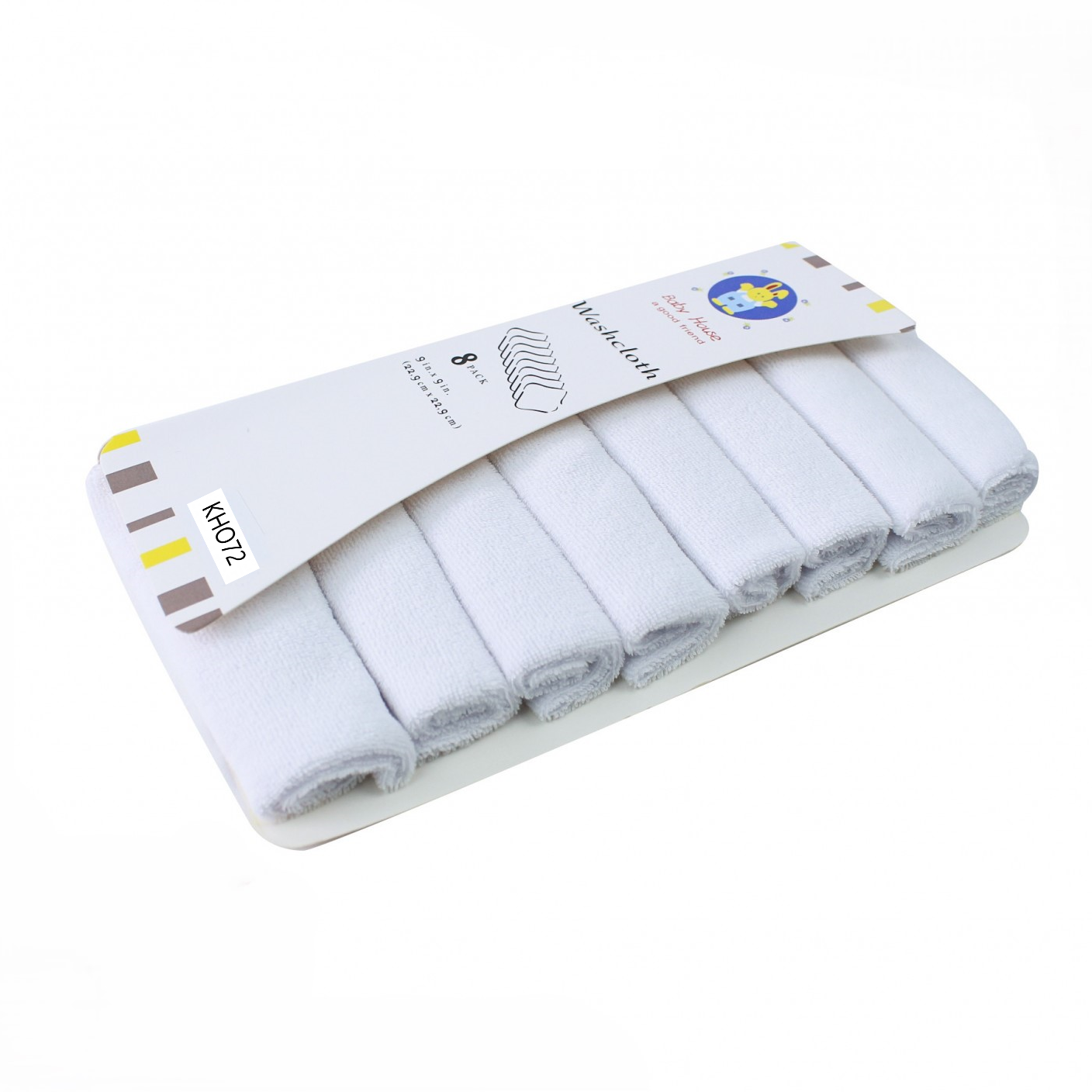 This pack of 8 Baby Washcloths is designed to be extra soft and gentle on your baby's delicate skin. Made from highly absorbent, ultra-soft fabric, these washcloths are perfect for bathing, wiping spills, or even as burp cloths. Their durable yet plush texture ensures long-lasting use while providing maximum comfort for your little one. Whether at home or on the go, these washcloths are an essential addition to your baby care routine.