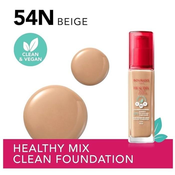 Achieve a naturally flawless complexion with Bourjois Healthy Mix Clean Liquid Foundation in shade 54N Beige.