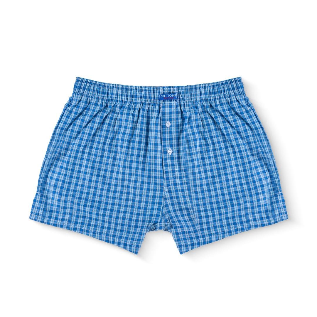 Bring freshness and comfort to your everyday wear with the COTTONIL Fit Cotton Boxer Plaid Shorts – Light Blue Collection.