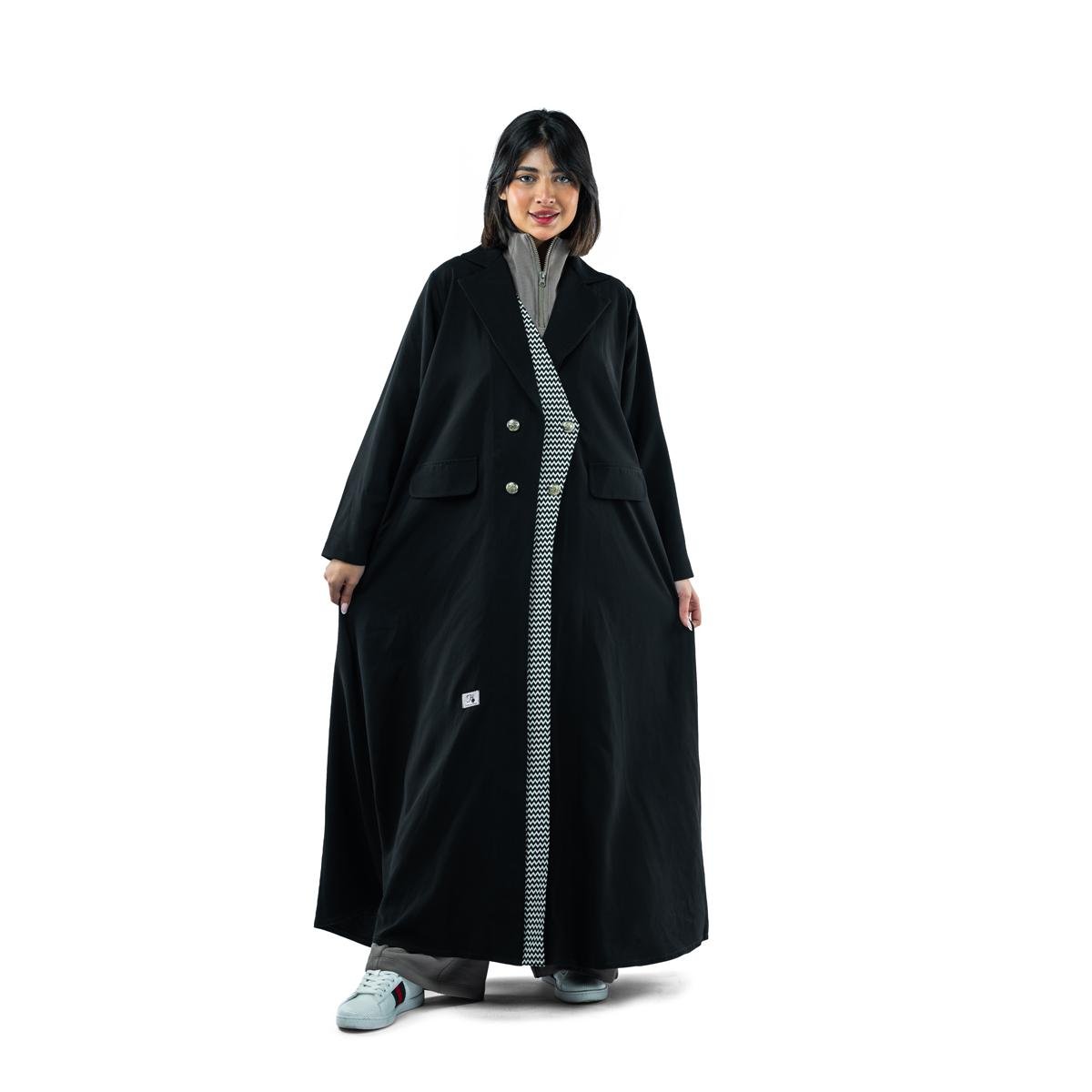 Redefine elegance and sophistication with this blazer-inspired abaya. Designed for the modern woman who values tradition with a touch of modernity, it features an elegant front embellished with double silver buttons and a structured collar for a sophisticated feel.