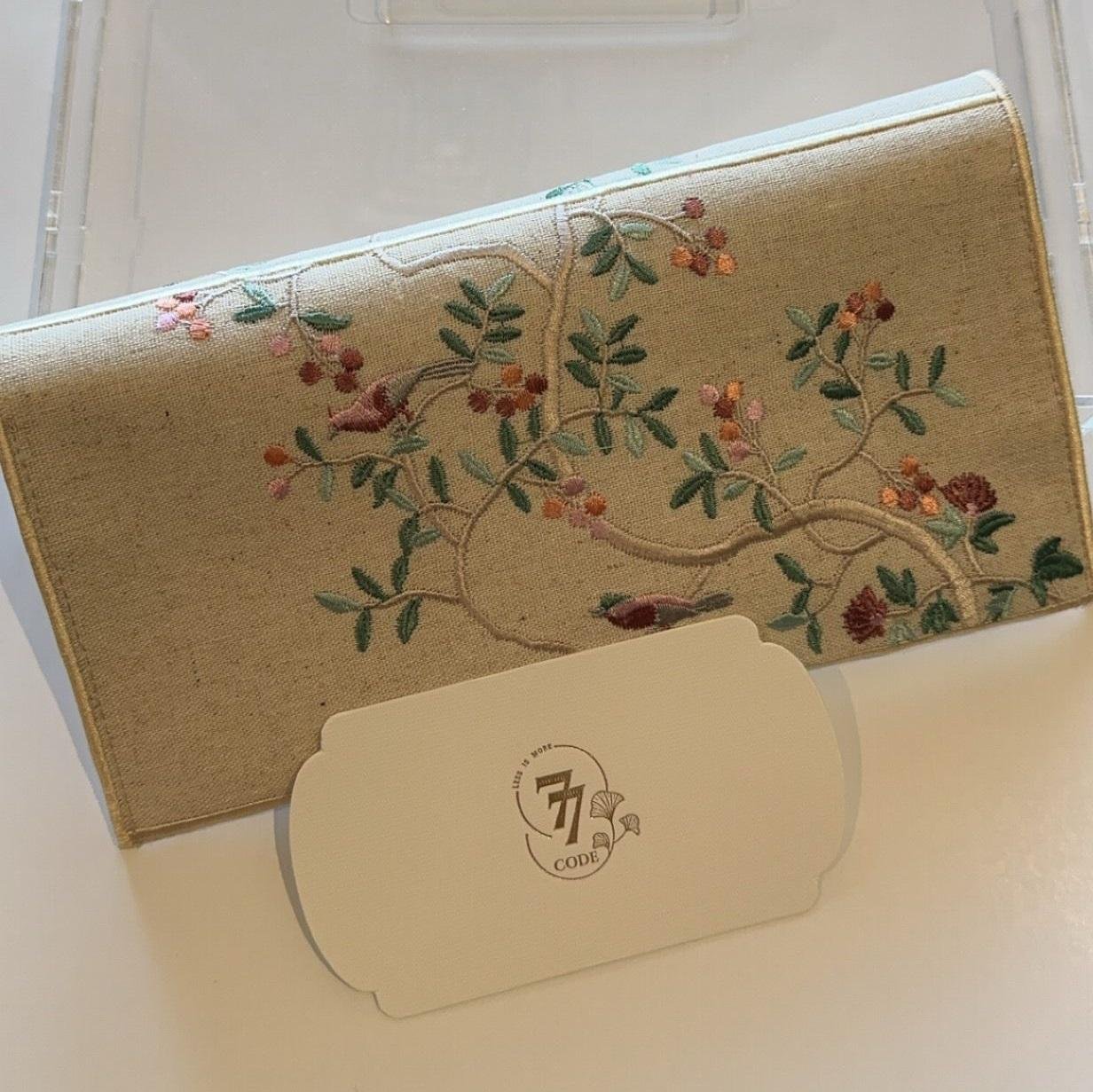The Embroidered Fabric Envelope – Blooming Branches & Birds. Crafted from high-quality fabric, this elegant envelope features delicate embroidery of blossoming branches intertwined with graceful birds, creating a serene and timeless design. Perfect for storing jewelry, love letters, gift cards, or treasured keepsakes, this envelope adds a refined touch to any occasion.
