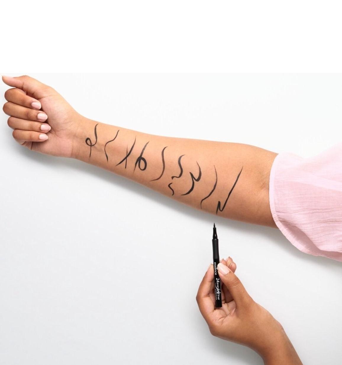 This high-performance liquid eyeliner features a precise felt-tip applicator, allowing for effortless sharp lines, dramatic wings, or subtle definition. With its deep black pigment and smudge-proof, waterproof formula, your eye makeup stays intact for up to 24 hours. Whether you’re going for a classic cat-eye or a bold graphic liner, this ink liner delivers intense color payoff and precision in every stroke.
