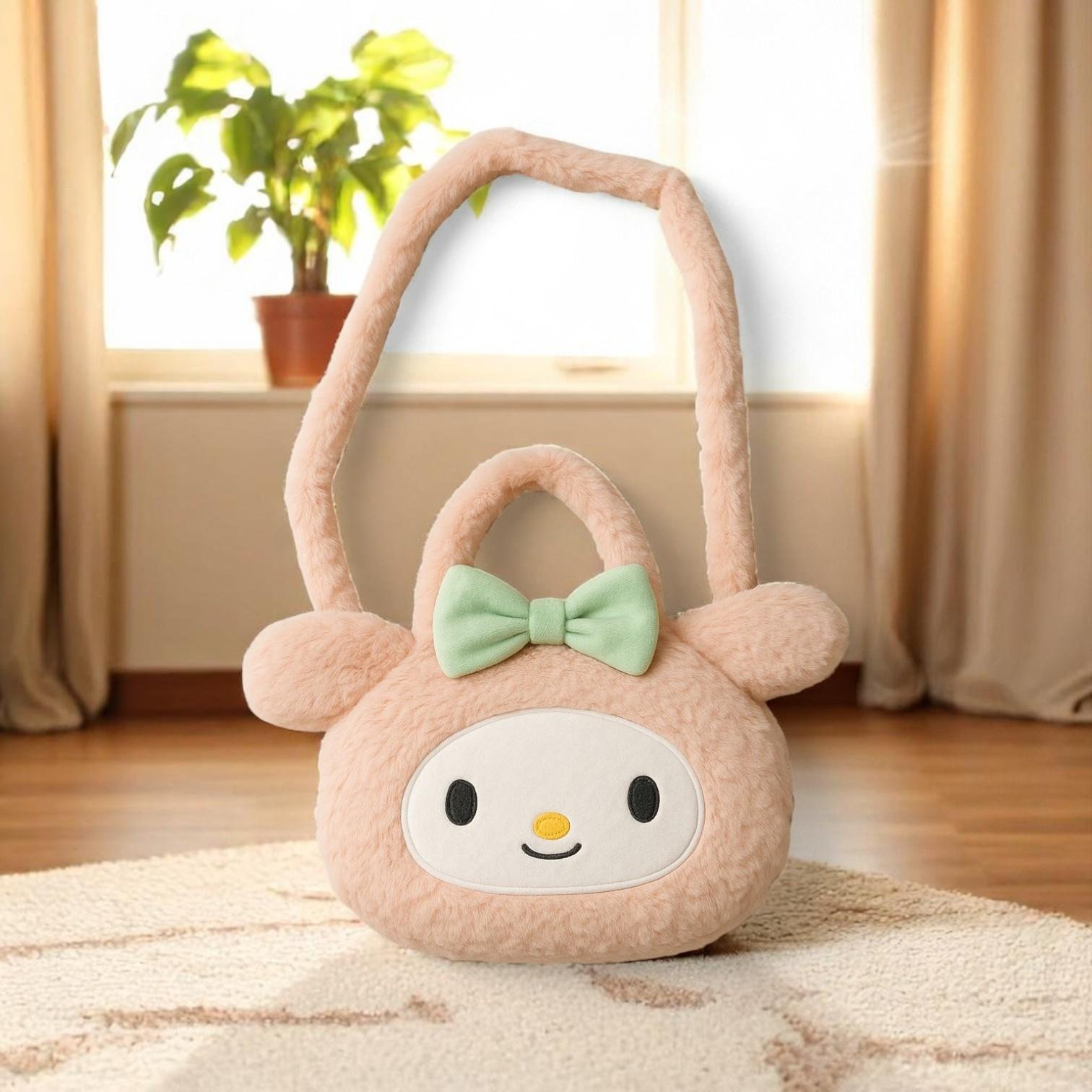 The Kawaii Plush Character Shoulder Bag with Bow is crafted from ultra-soft plush material, this charming bag features a lovable character design accented by a sweet bow, making it the perfect companion for outings, casual events, or even as a delightful gift.