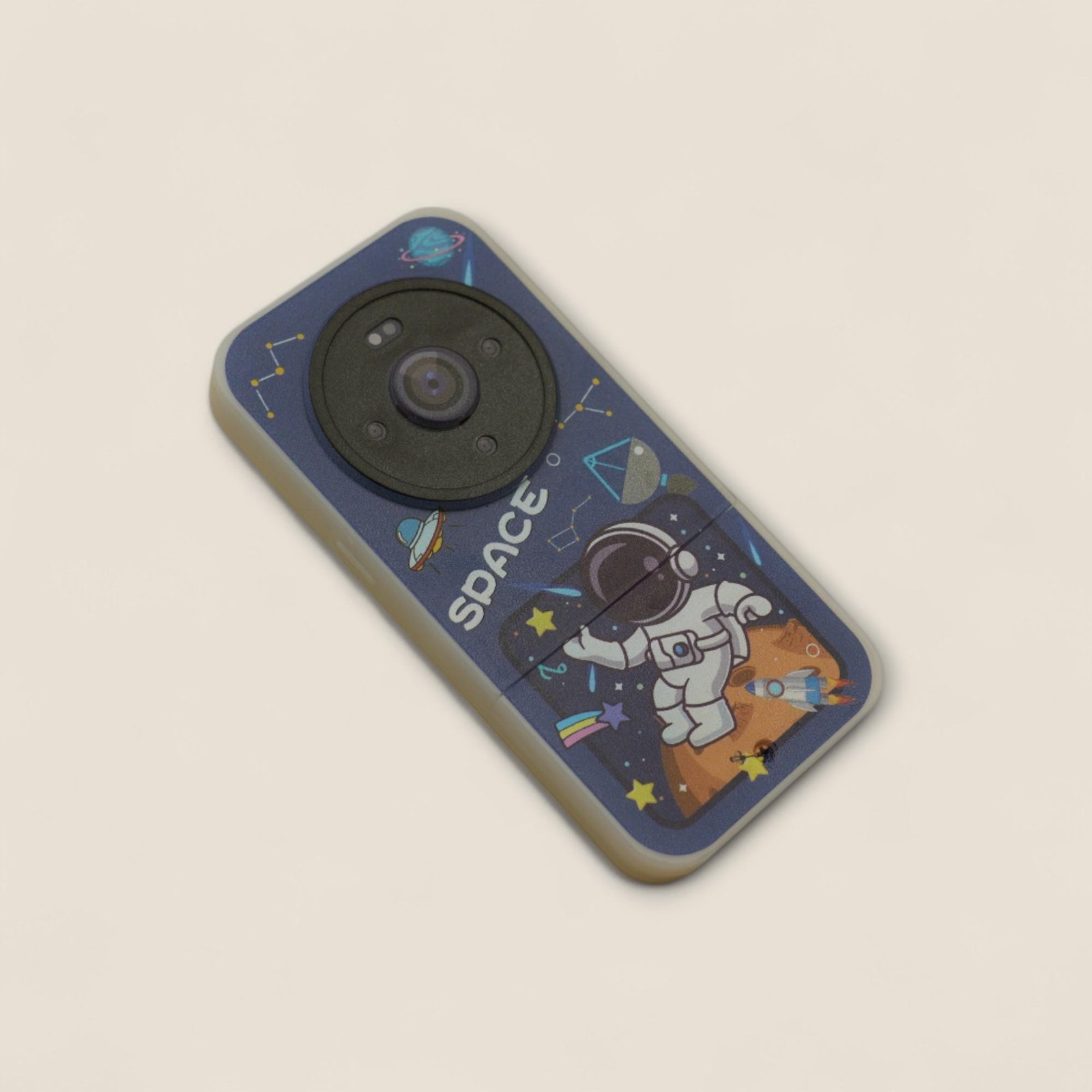 Give your children a fun learning experience inspired by the magical world of space with a space-themed musical educational phone for kids and a square camera design