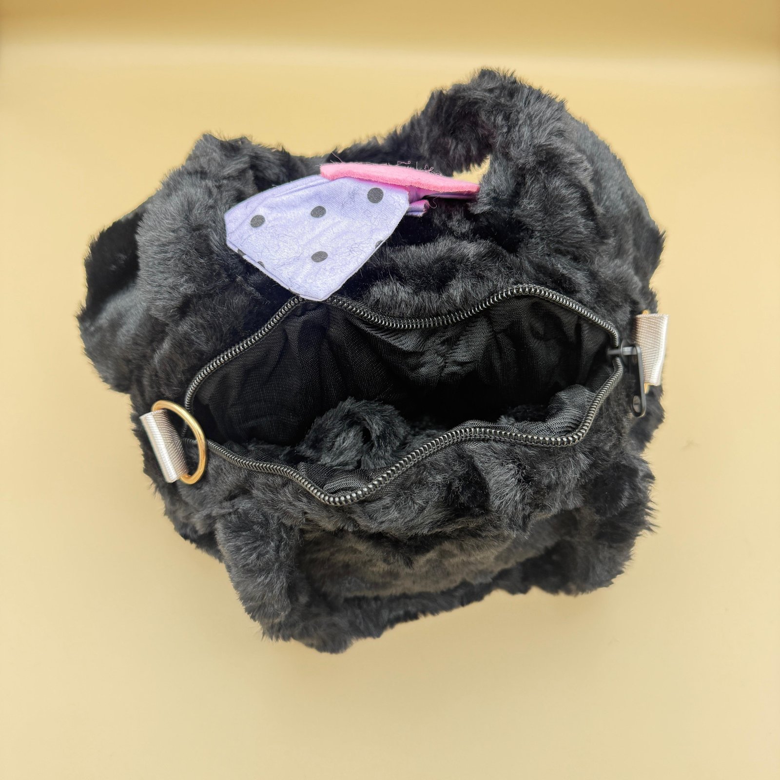 The Kuromi Plush Shoulder Bag for Girls is a charming companion for daily adventures! With its soft plush texture and adorable Kuromi character design.