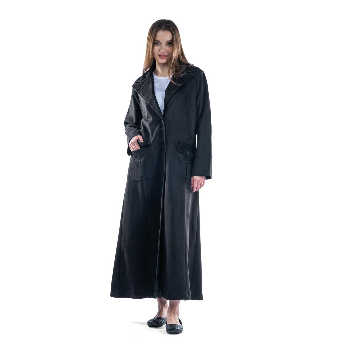 Get an elegant and modern look that never goes out of style with our long coat with pleated pockets
