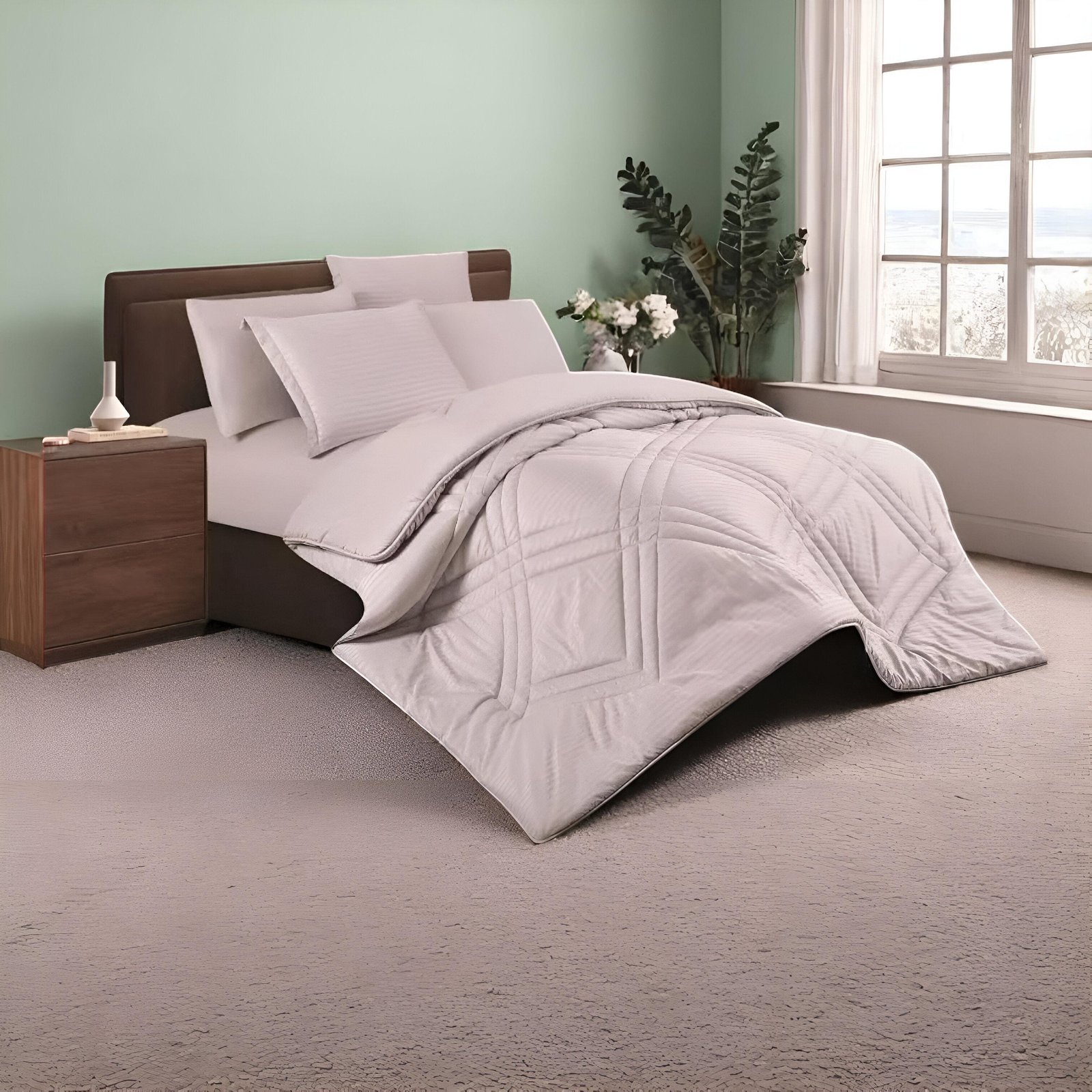 This elegant set features a matte quilted grid design that brings structured style and a tranquil atmosphere to any modern bedroom. With Mora’s renowned Spanish craftsmanship and soft-touch fabrics, it delivers the perfect balance of simplicity, comfort, and visual harmony.