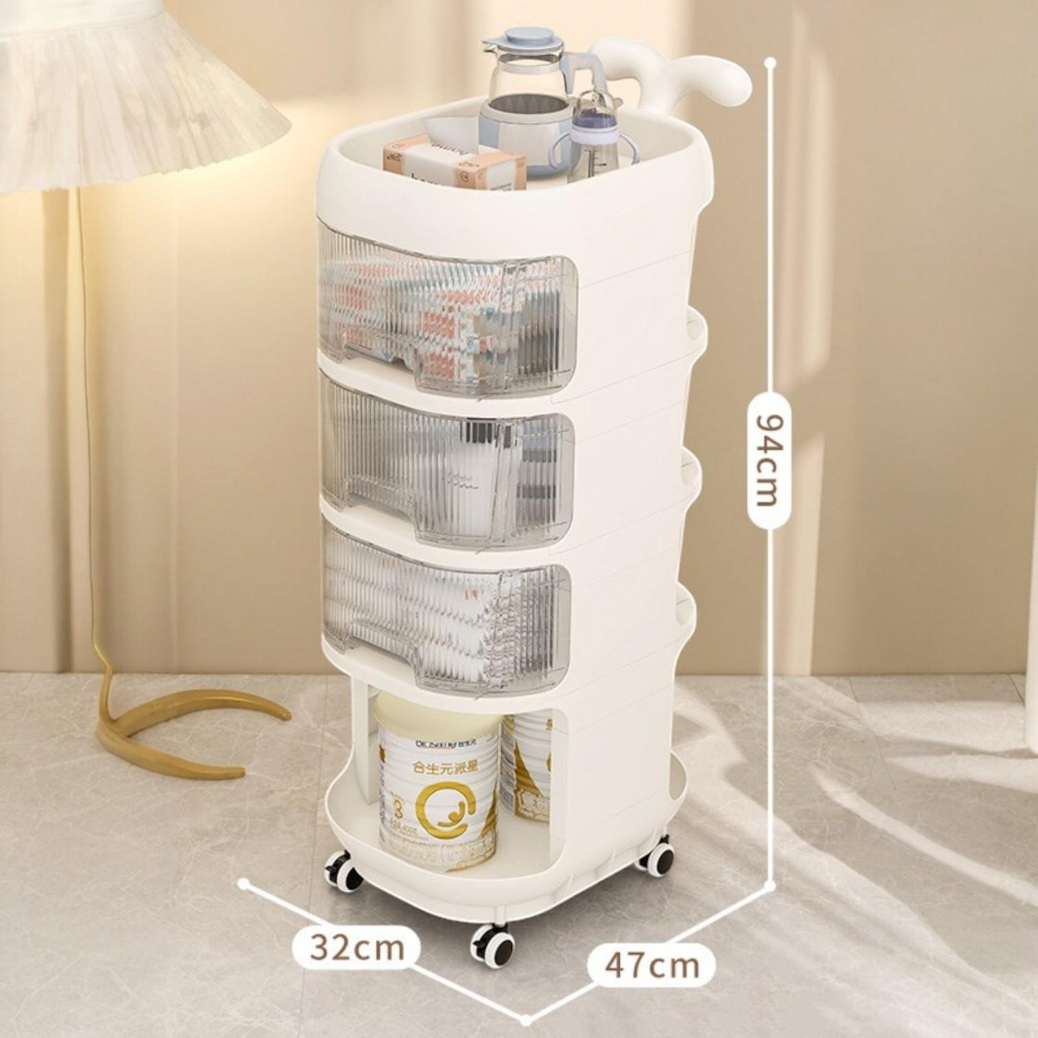 Easily arrange your baby's supplies and keep them close at hand. This mobile stroller is ideal for busy mothers, as it contains three transparent drawers to store diapers, wipes, toys, or feeding supplies. Say goodbye to messy searching while changing the diaper at night. Its smooth wheels allow you to move it from the bedroom to the hall or anywhere your child goes, and its sturdy frame ensures stability when needed