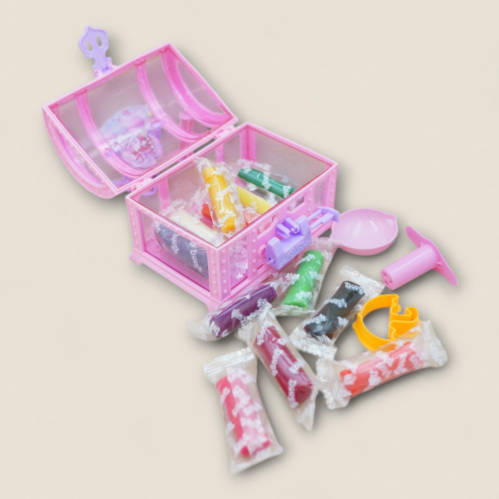 Open the door to creativity with the Enchanted Princess Treasure Box Playdough Set! This fun set includes 12 colorful, child-safe dough packs, plus molds and shaping tools for creating crowns, jewels, and other imaginative shapes. The sturdy box keeps all the pieces organized, making it perfect for travel or play at home. The dough is soft, easy to shape, and stimulates little ones' imaginations for hours of fun.