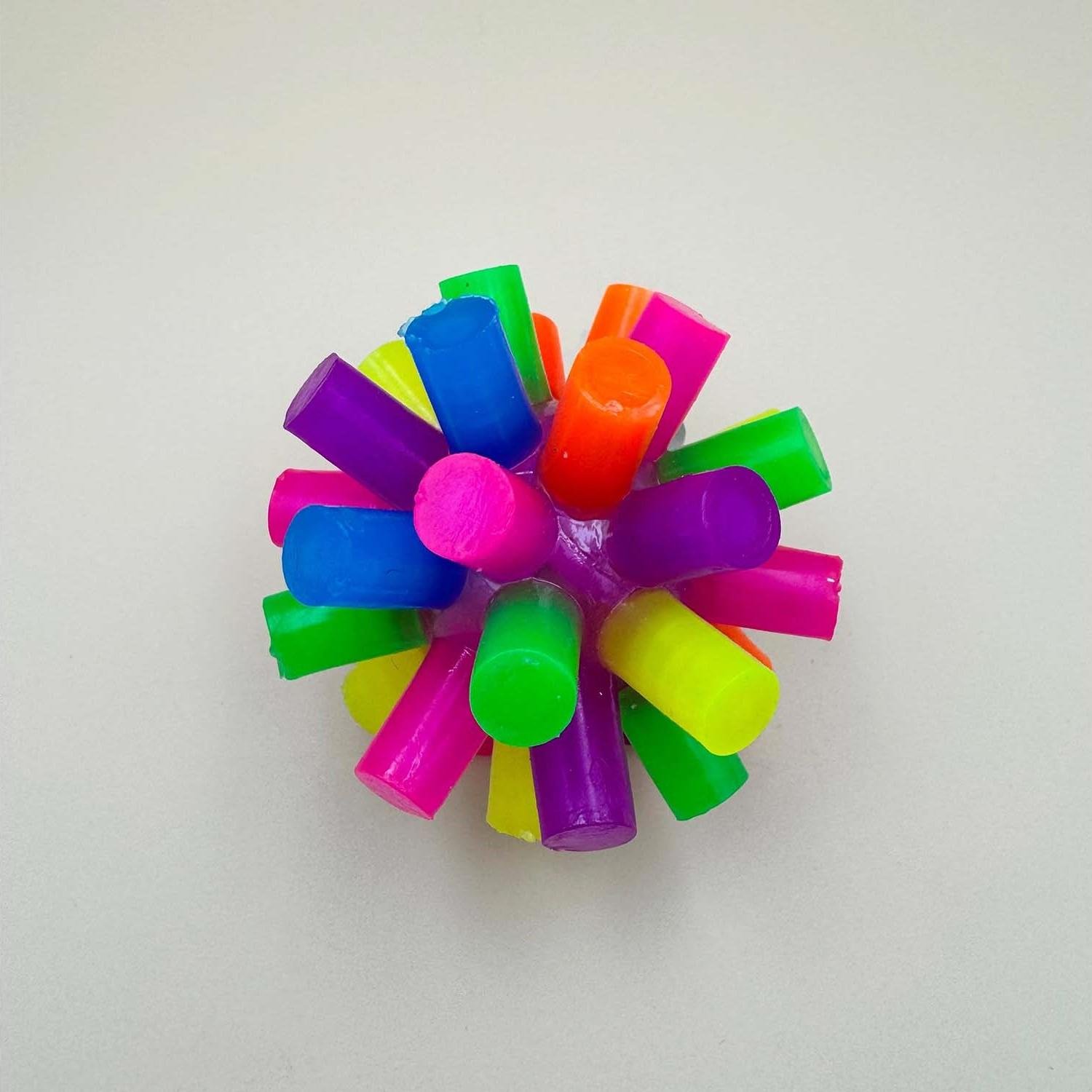 Add a touch of fun to your day with a rainbow spiked ball.