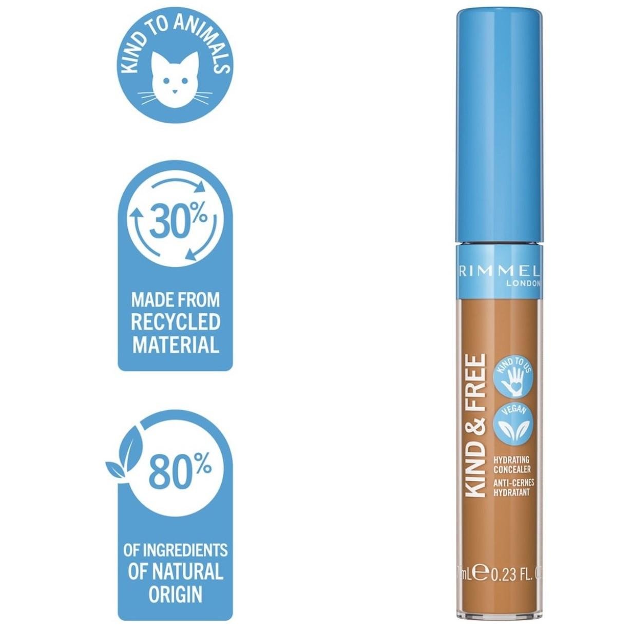 Discover your new favorite product. Rimmel London's Kind and Free Moisturizing Concealer in N 40 - Tan provides natural, easy coverage for perfect skin. Thanks to its skin-nourishing ingredients, it not only conceals blemishes, but also gives your skin all-day hydration, leaving it fresh and radiant.