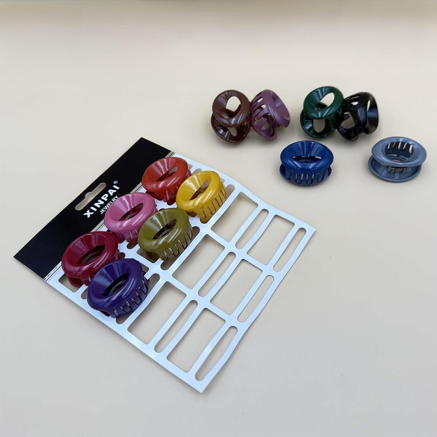 Say goodbye to boring ties, try our colorful round plastic hair clips, set of 12 pieces, non-slip grip, lightweight and durable