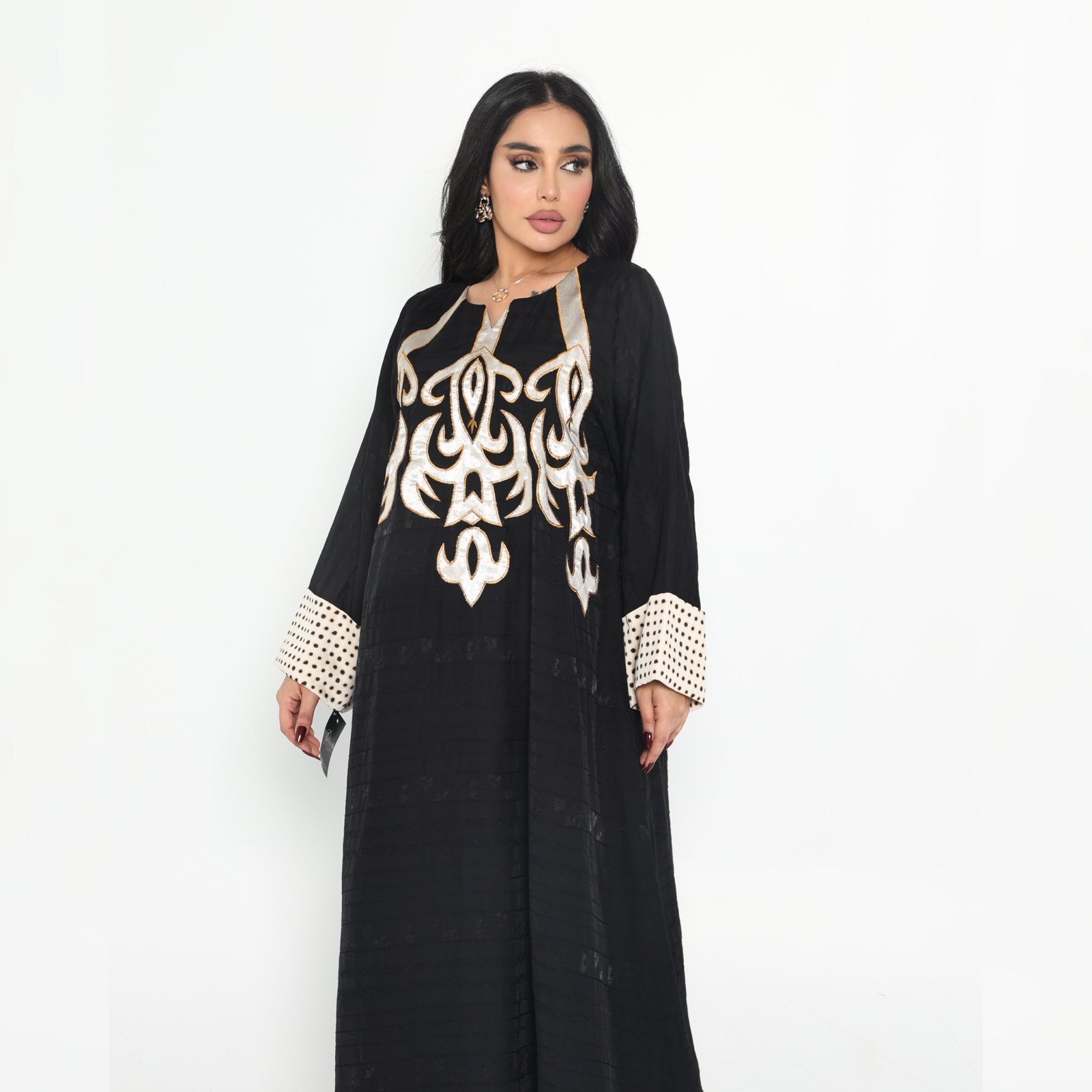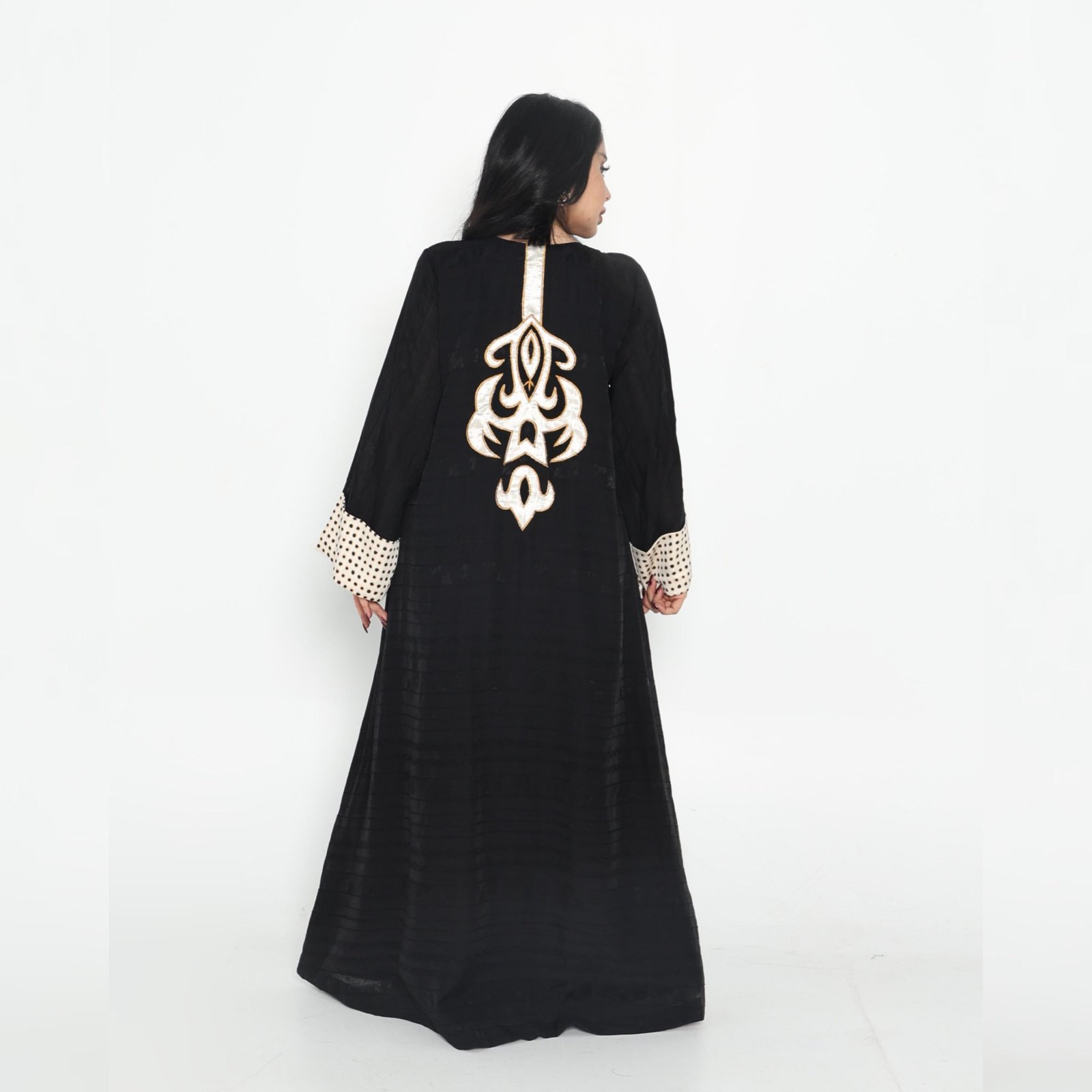 Add a touch of elegance and comfort to your look with this royal black abaya. It features intricate hand embroidery and contrasting sleeves for a modern and attractive touch. Made from high-quality, lightweight fabric for all-day comfort, it's perfect for everyday wear or special occasions