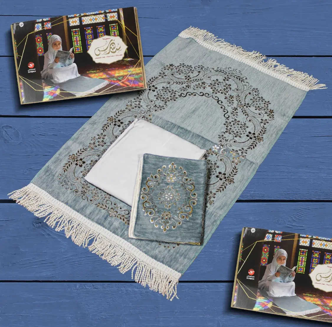 This set is designed with comfort and elegance, this set makes prayer time special and enjoyable for young worshippers. Key Features: ✔ Complete Set – Includes a prayer mat, a modest prayer dress, and a Quran cover. ✔ Soft & Comfortable Fabric – Gentle on the skin, perfect for daily use. ✔ Elegant & Child-Friendly Design – Features beautiful colors and patterns to inspire young girls. ✔ Encourages Regular Prayer – Makes learning and practicing Salah more enjoyable. ✔ Perfect Gift Idea – A meaningful and thoughtful gift for young Muslim girls.