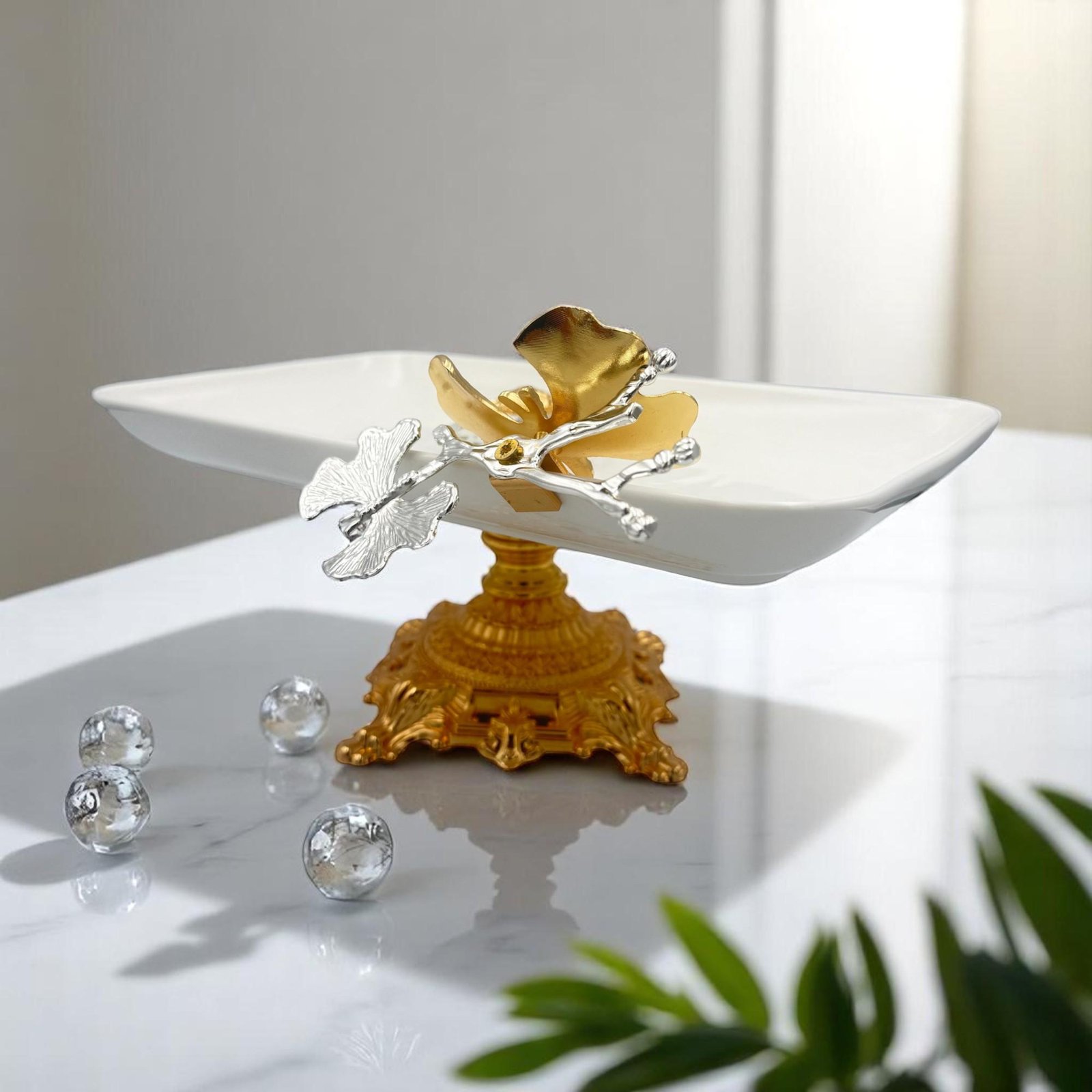 Bring graceful beauty to your space with this Decorative Ceramic Butterfly Dish on a Gold Stand.