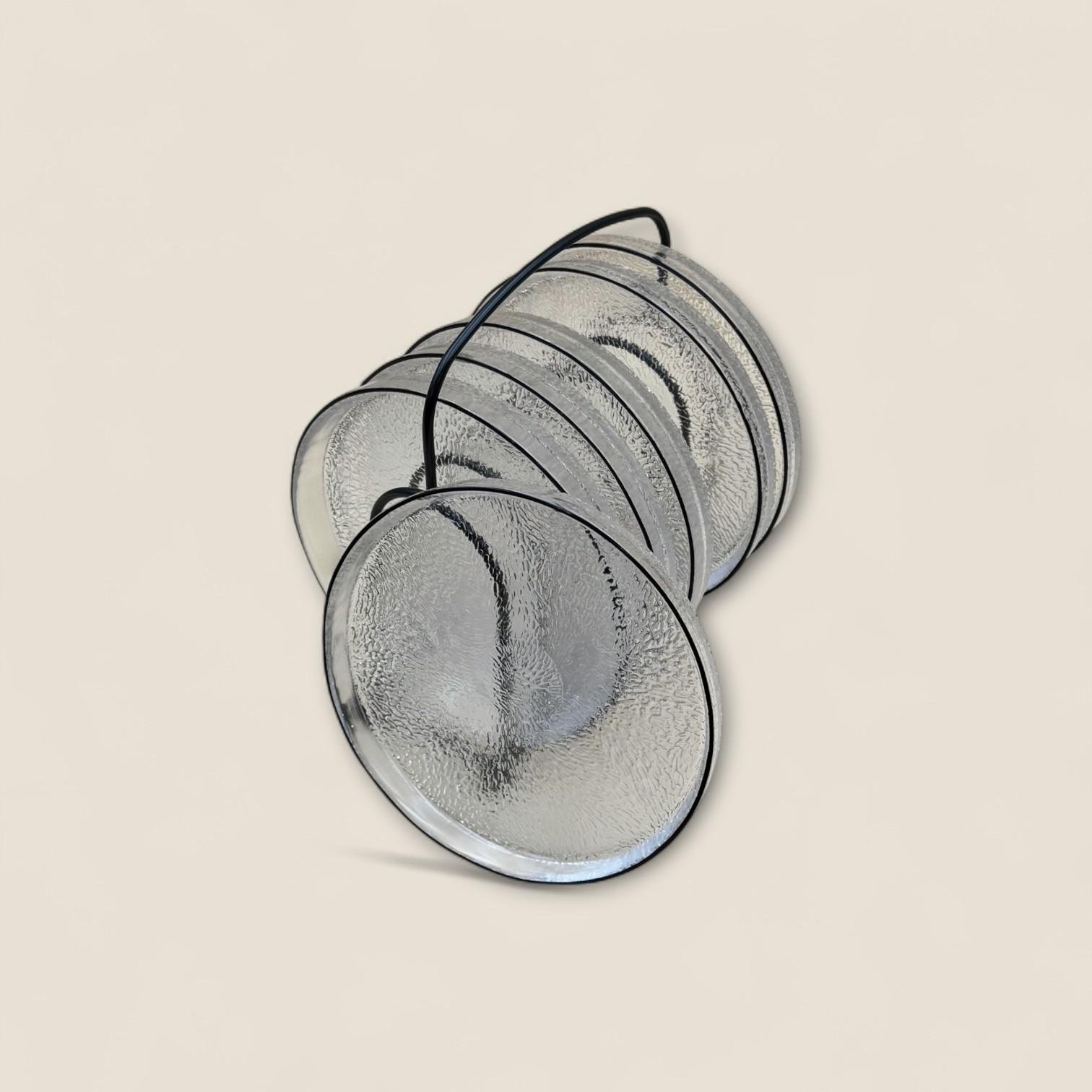 These coasters are crafted from high-quality glass, each coaster features a ripple-textured surface that not only prevents slippage but adds a sophisticated, decorative touch to any setting.