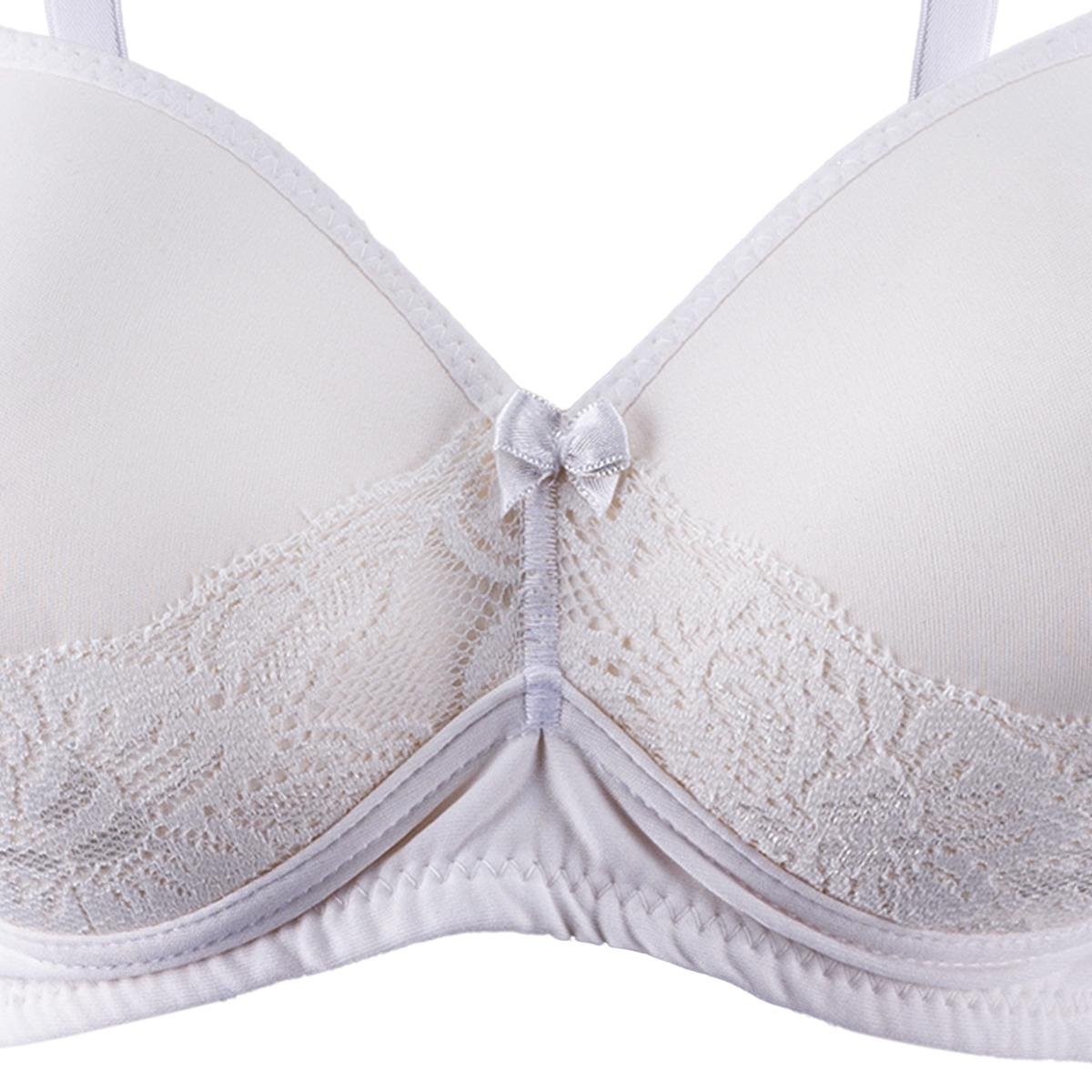 You are looking for a bra that combines comfort and elegance. This white bra with lace details provides you with support and the perfect shape without compromising on the beautiful appearance. They come with padded cups, a soft satin bow in the middle, and a touch of floral lace that adds soft femininity to the design