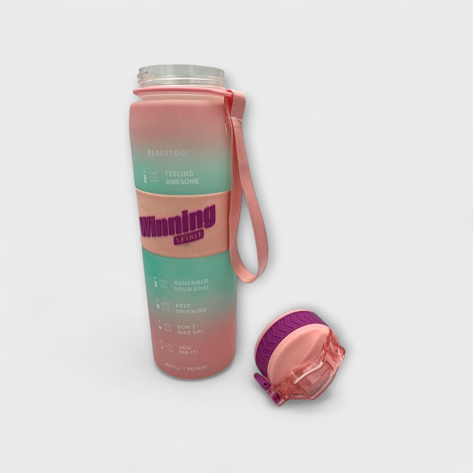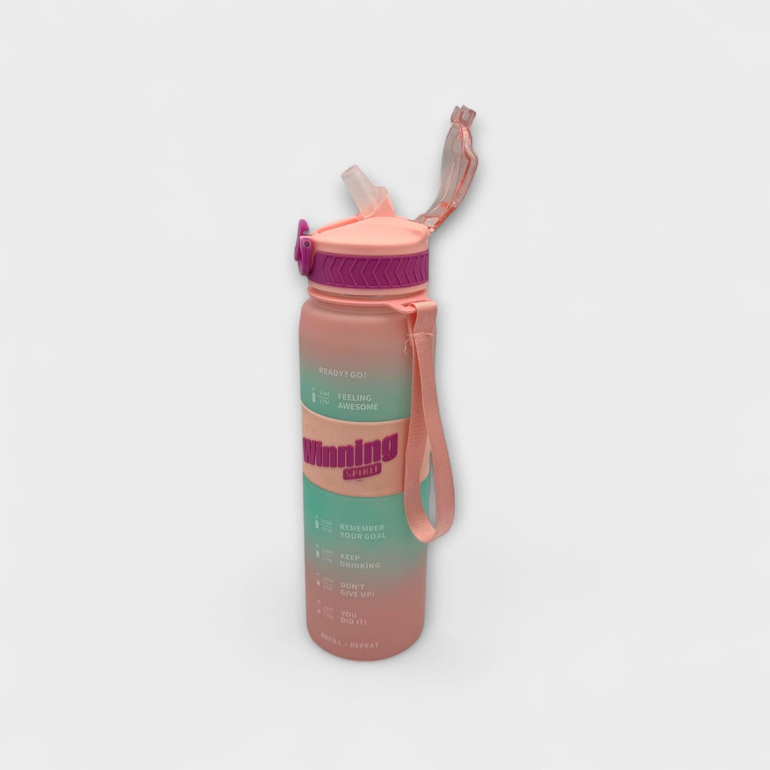Stay fresh and stylish with the Winning Spirit bottle in a gradient color design. With a capacity of 1000 ml, it's the perfect choice for those who love to stay on the go and stay active. Its attractive design makes it stand out everywhere – from the gym to the office and even on trips.