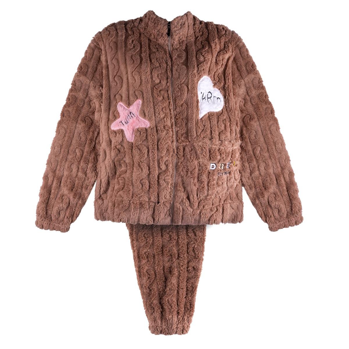 Enjoy warmth and style with these embroidered star and heart pajamas! Made from ultra-soft, furry fabric, this two-piece set is perfect for lazy mornings, movie nights, or simply lounging around in comfort. The unique embroidery adds a playful and flirty touch, while the relaxed fit ensures all-day (or night!) comfort