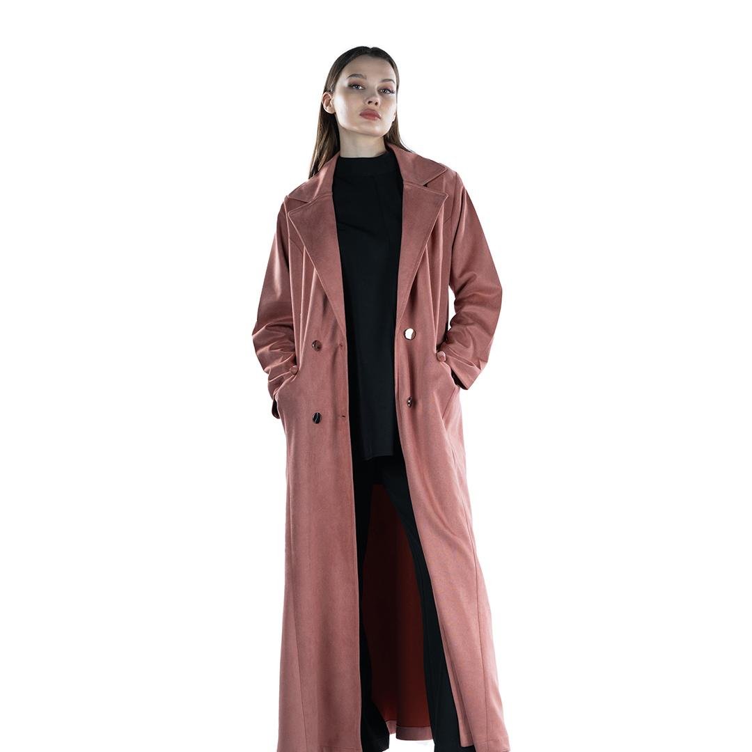 Step out in style with our Elegant Women's Long Trench Coat in a stunning dusty rose color