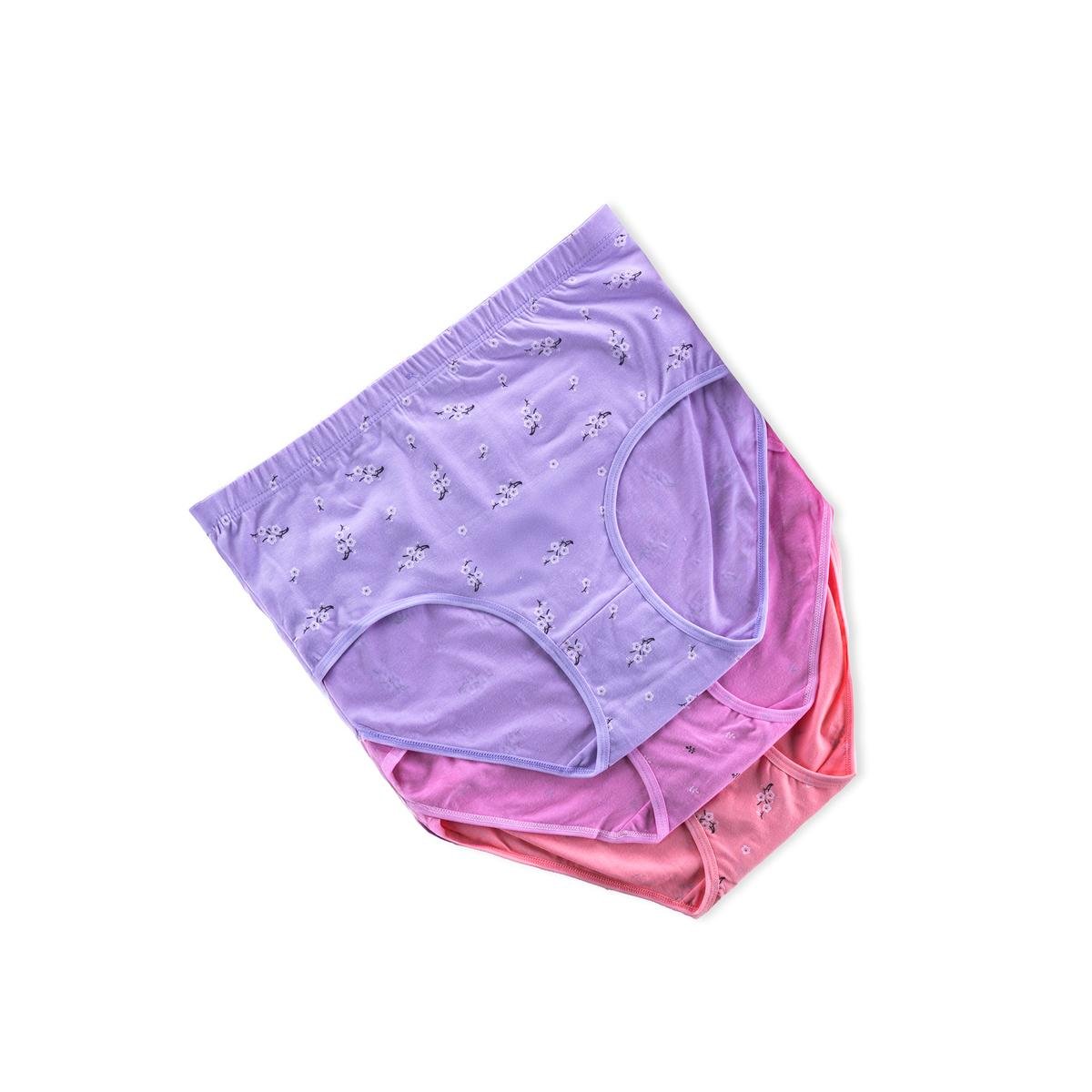 Enjoy all-day comfort and confidence with this three-pack of high-waisted cotton briefs featuring a soft floral print. Designed for comfort against the skin, the breathable cotton fabric provides full coverage and a soft feel. The high-waisted cut flatters the body seamlessly without constriction, while the floral prints add a feminine and modern touch.