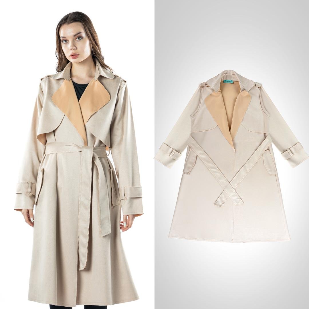 Elevate your wardrobe with our Elegant Two-Tone Long Belted Trench Coat, designed for the modern woman who values both style and functionality. This sophisticated trench coat features a unique two-tone design with a contrasting inner lapel, adding a touch of elegance to any outfit. The adjustable belt cinches at the waist, creating a flattering silhouette, while the durable fabric ensures long-lasting wear. Perfect for both casual and formal occasions, this trench coat is a must-have addition to your outerwear collection.