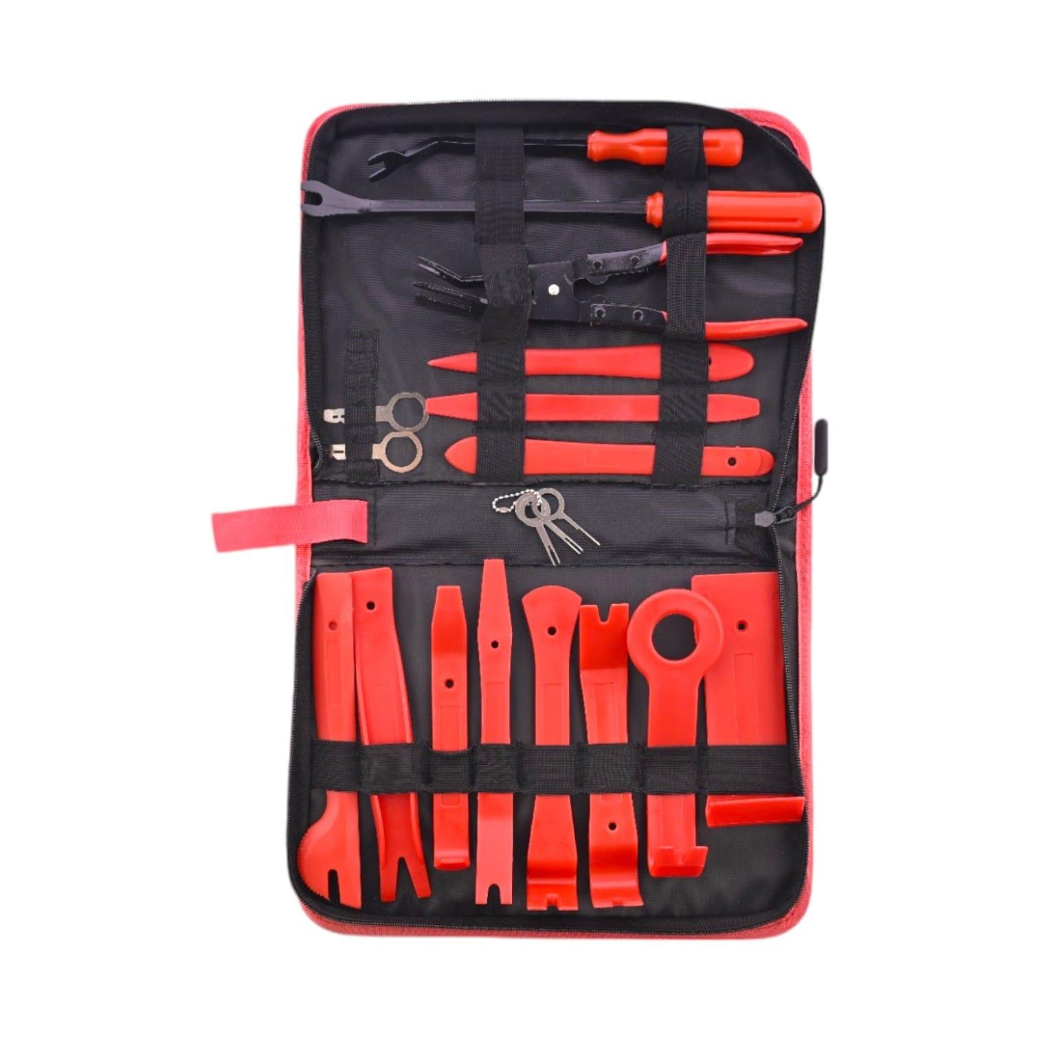 مجموعة إزالة المشابك الزخرفية المكونة من 24 قطعة عبارة عن مجموعة شاملة مصممة لإزالة مشابك الزخرفة الداخلية والخارجية دون تلف. يتميز بالعديد من أدوات النقب ومزيلات المشابك ، مما يضمن تفكيكا آمنا وفعالا لألواح السيارات ولوحات العدادات والقوالب. مثالي لمحترفي تفصيل وإصلاح السيارات.