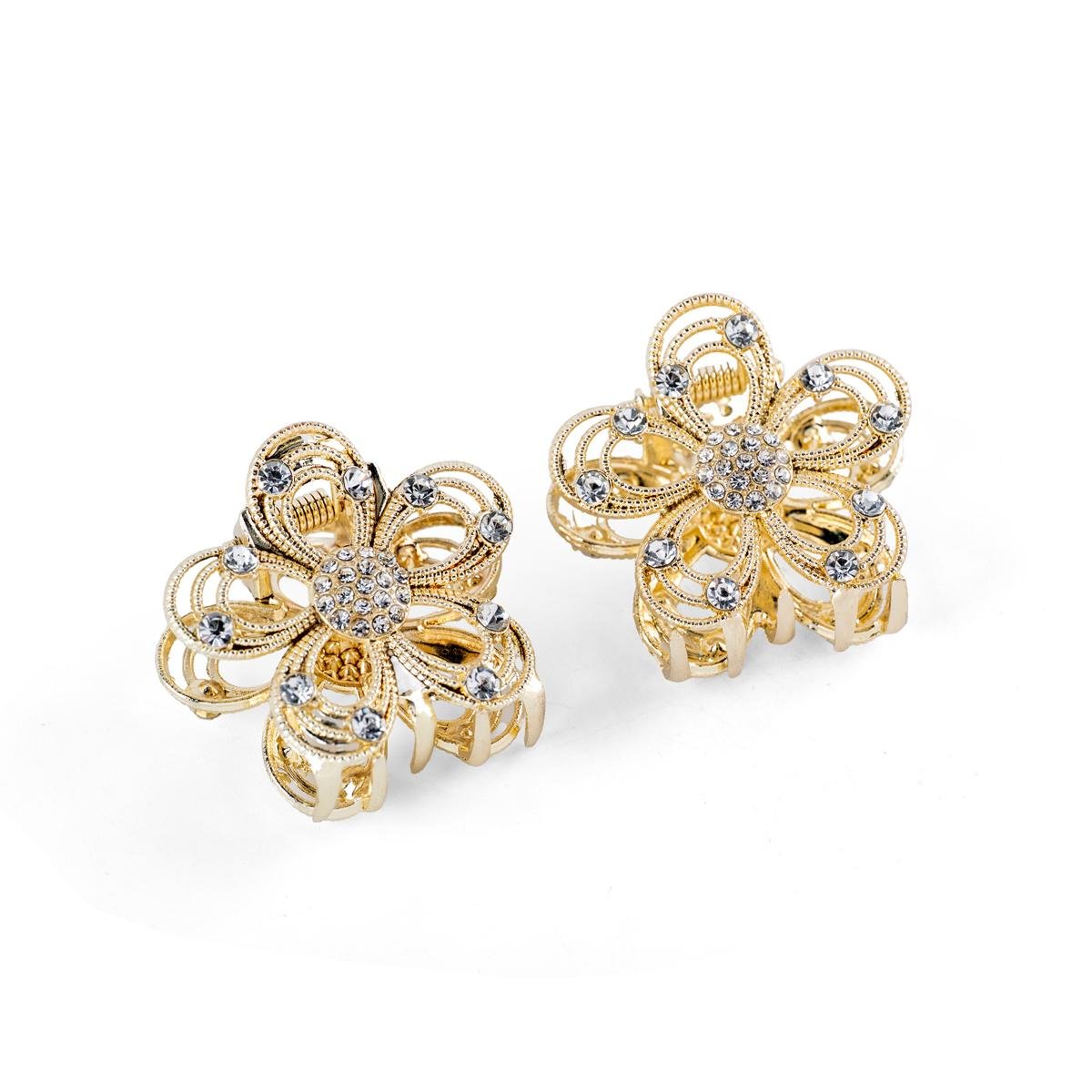 أكملي إطلالتك بأناقة مع مجموعة مشابك الشعر المزينة بأحجار الراين بتصميم زهري.