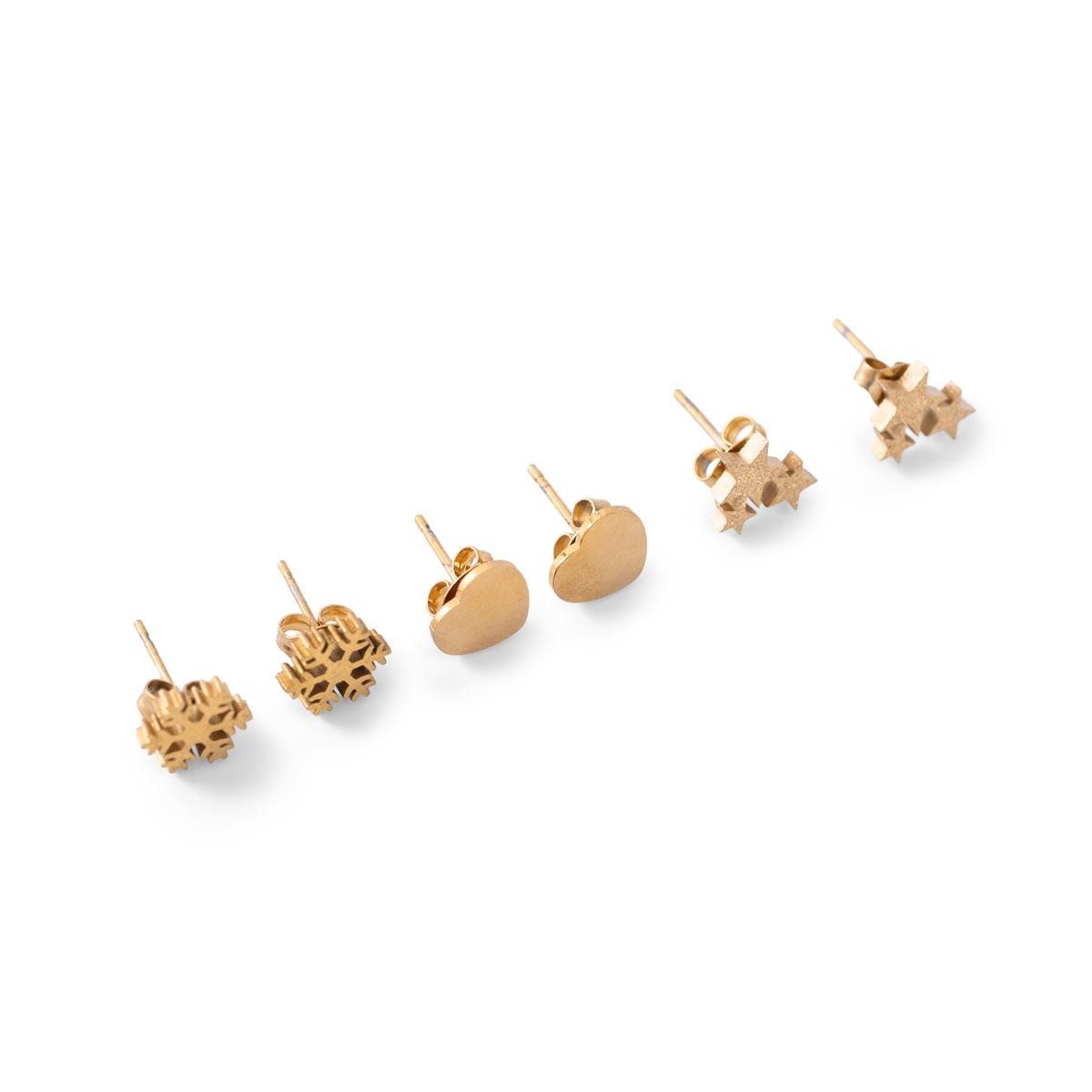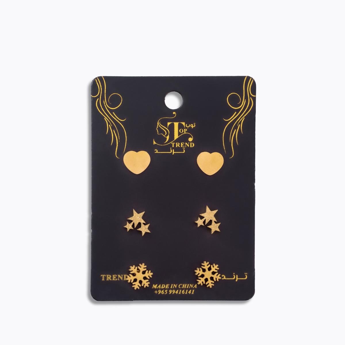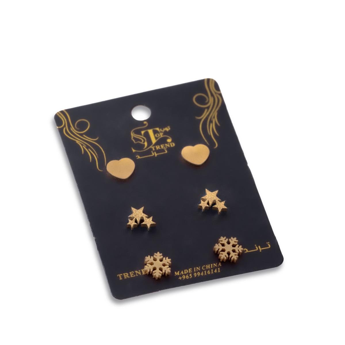 أضف لمسة ساحرة إلى مجموعة مجوهراتك مع مجموعة أقراط الثلج الصناعي مع قلوب ونجوم متألقة. تتميز هذه المجموعة بمزيج رائع من الأناقة والجاذبية، مثالية لإضفاء رونق خاص على أي إطلالة، سواء كانت كاجوال أو رسمية.