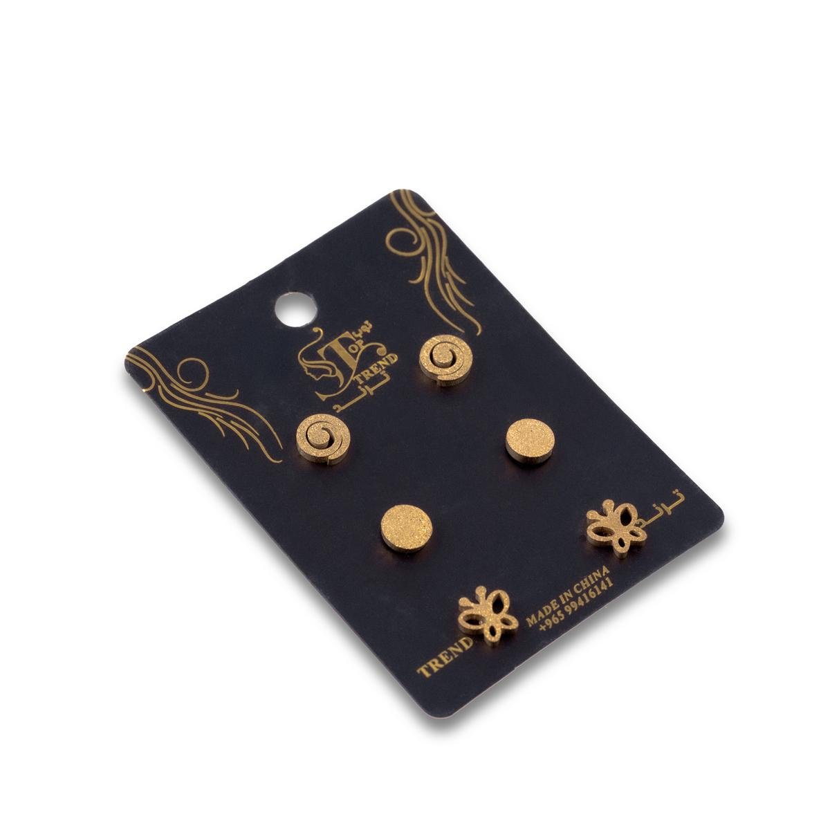 تألقي مع هذا الطقم الرائع من الأقراط، الذي يجمع بين الأناقة والتنوع. يتميز هذا الطقم بثلاثة تصاميم فريدة: اللولب العصري، الفراشة الرقيقة، والدائرة ذات النقوش المحكمة مصممة جميعها لإضافة لمسة من الجاذبية والرقي إلى أي إطلالة. سواء كنتِ تستعدين لمناسبة خاصة أو ترغبين في إضافة لمسة تألق يومية، فإن هذه الأقراط هي الخيار الأمثل.