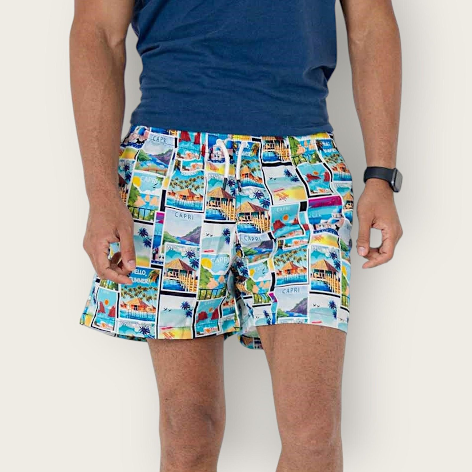 اهرب إلى أجواء الاستوائية مع شورت السباحة "جزيرة الهروب" بطباعة بطاقات بريدية متعددة المناظر من بلو أوريجنال! مستوحى من المناظر الطبيعية الخلابة، هذا الشورت الأنيق يجمع بين الراحة والمتانة، ليكون خيارًا مثاليًا لعشاق الشاطئ والمسبح. مصنوع من قماش سريع الجفاف وعالي الجودة، يمنحك انتعاشًا طوال اليوم وحرية الحركة لتبدو أنيقًا وتشعر بالراحة.