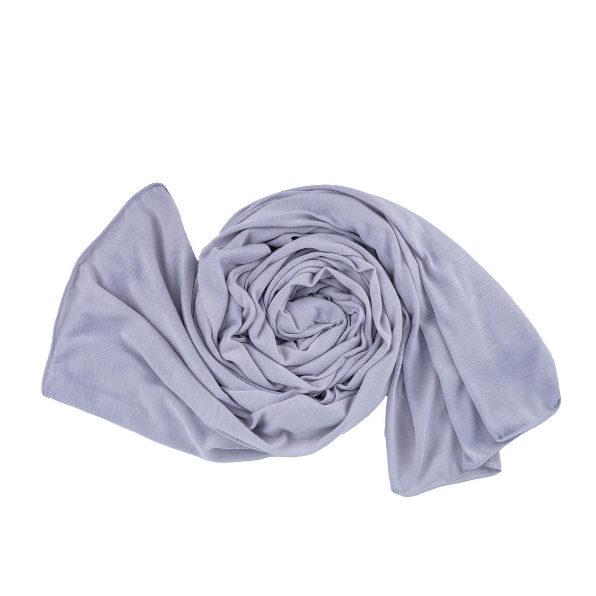 أضيفي لمسة من الرقي إلى إطلالتك اليومية بهذا الشال الأنيق مع شيلة شيفون مع قطن بحواف مخيطة بدقة - رمادي فاتح
