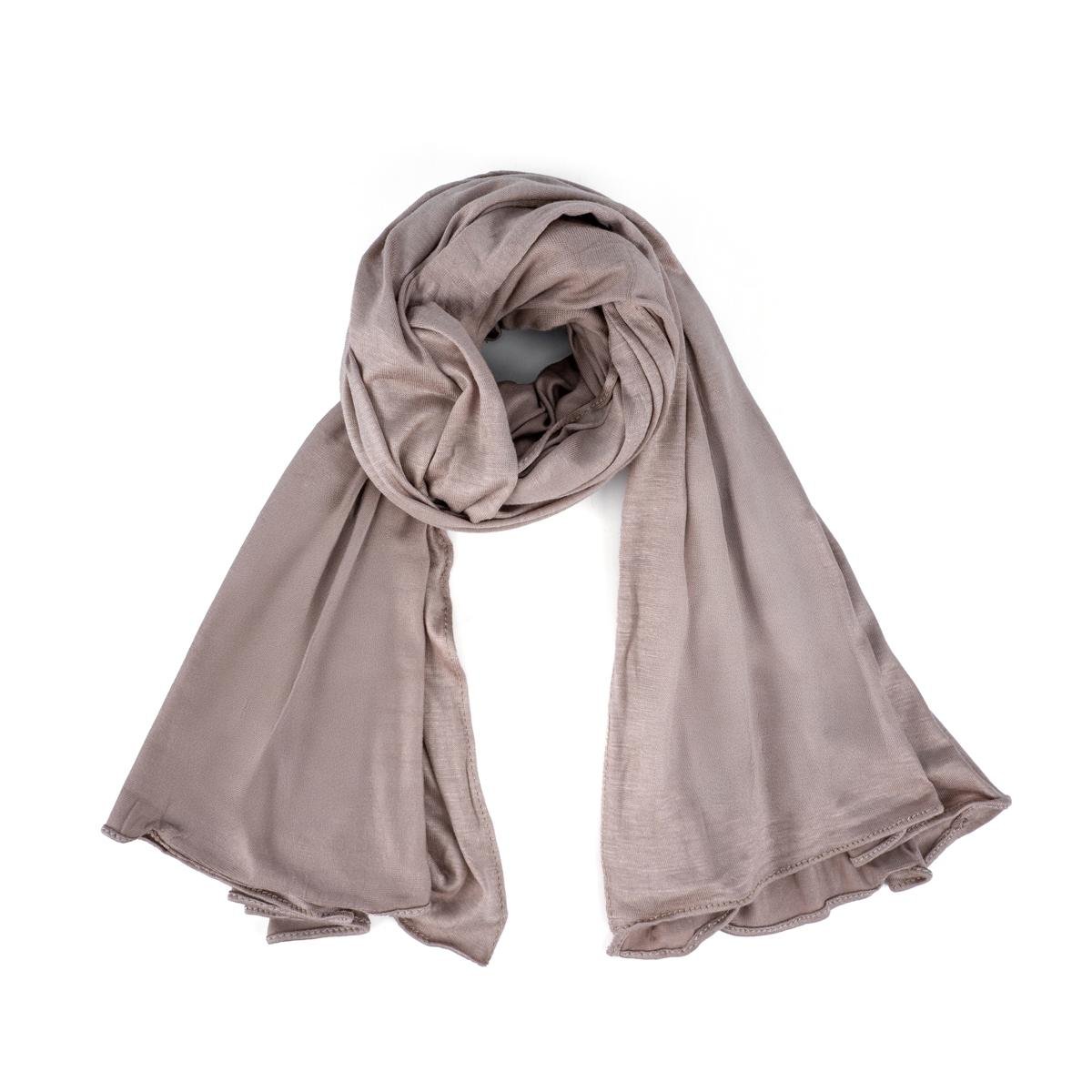 وشاح قطن وشيفون بحواف مخيطة بدقة كاكي فاتح خفيف وأنيق ومثالي للاستخدام اليومي
