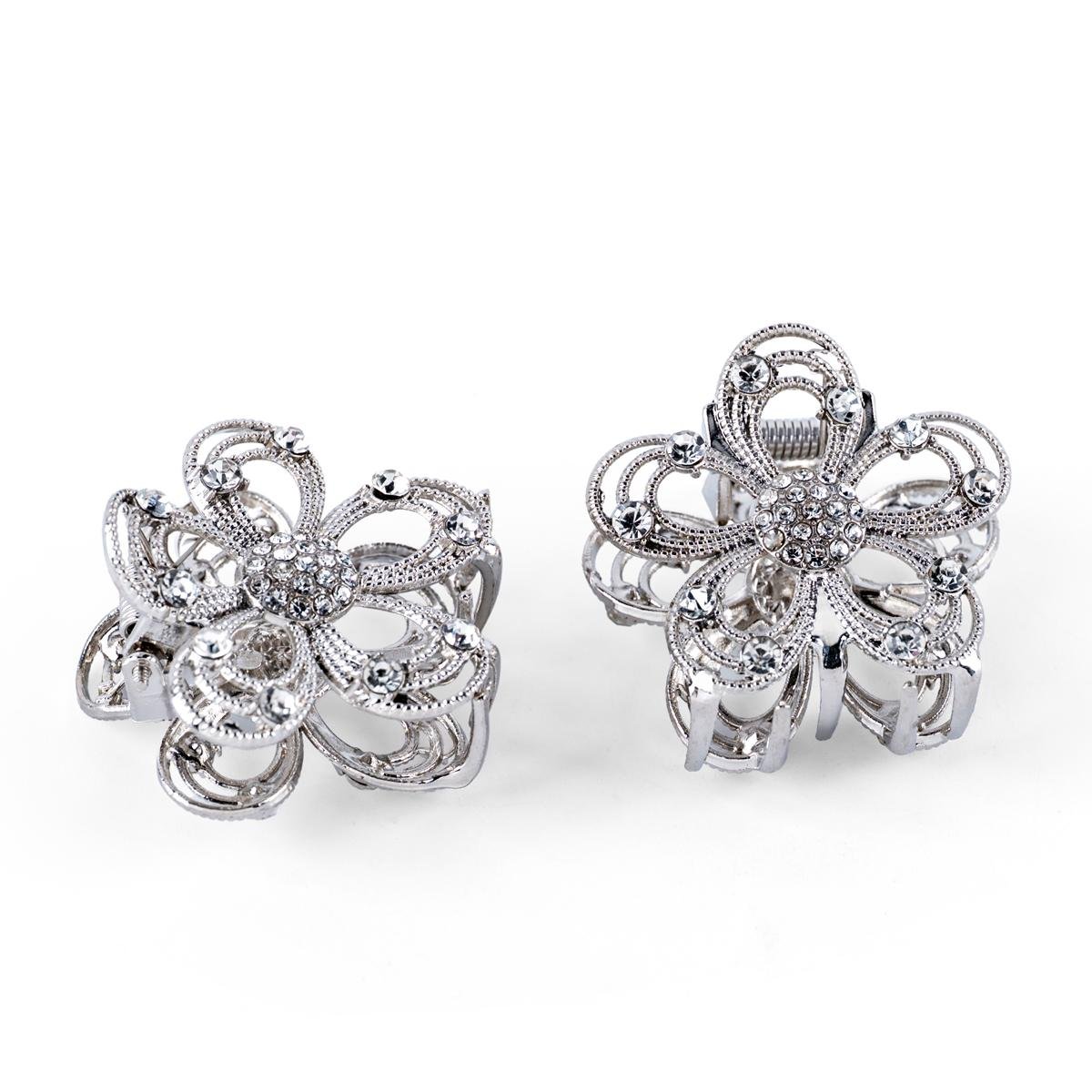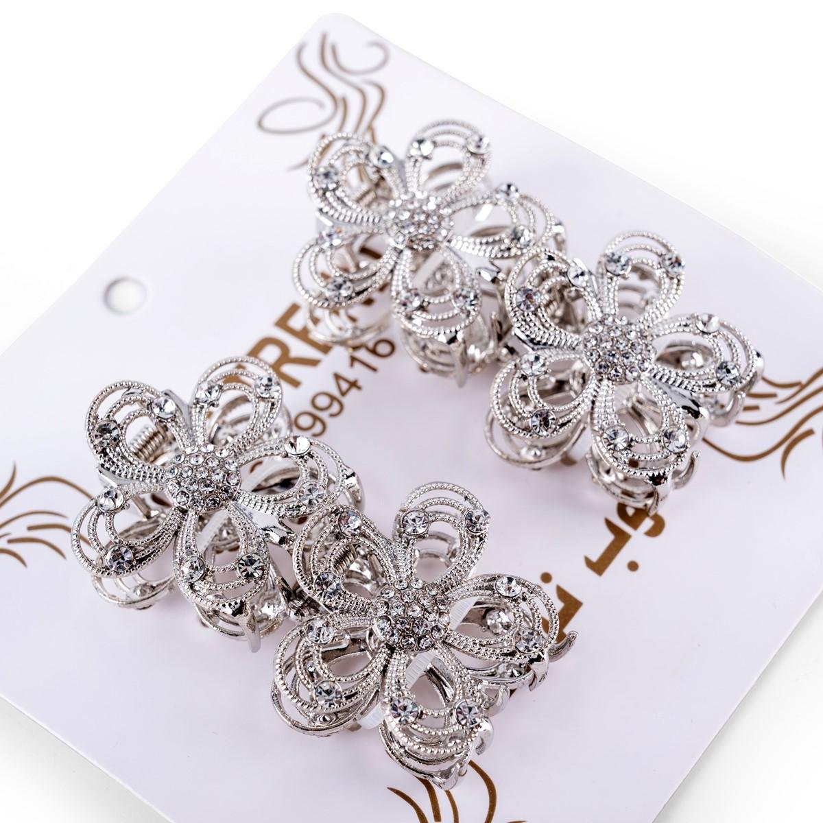 أضيفي لمسة راقية إلى تسريحتك مع مجموعة مشابك الشعر المزخرفة بالزهور والمرصعة بأحجار الراين.