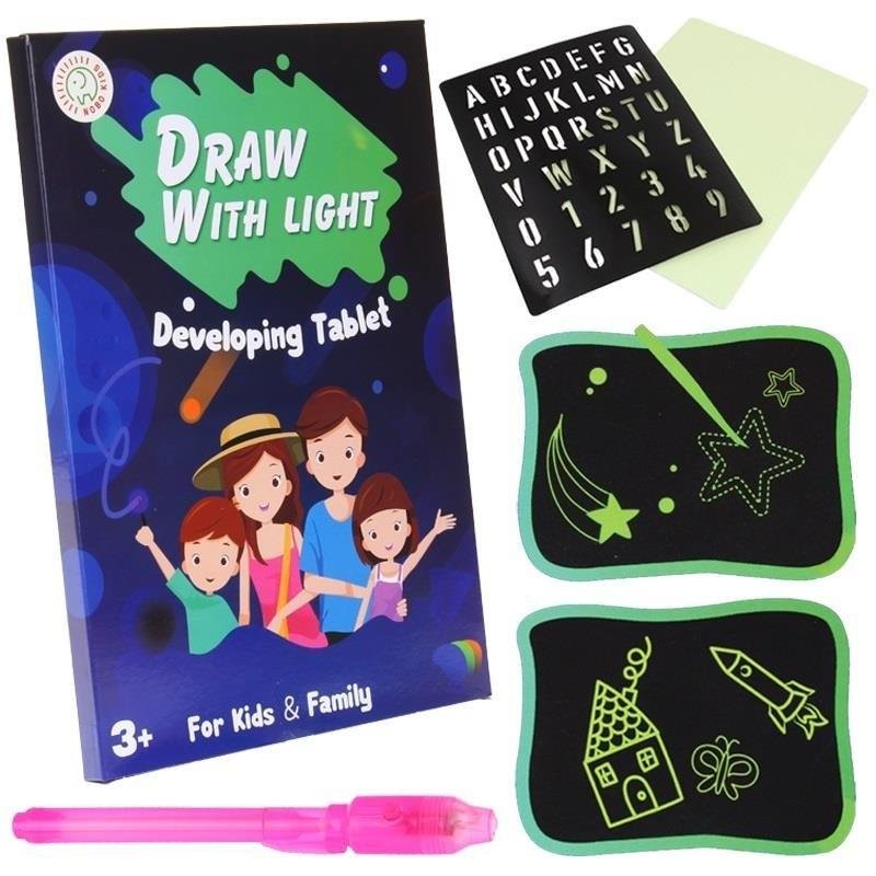 لوح رسم مضيء للأطفال مع قلم سحري وقوالب تشكيل.