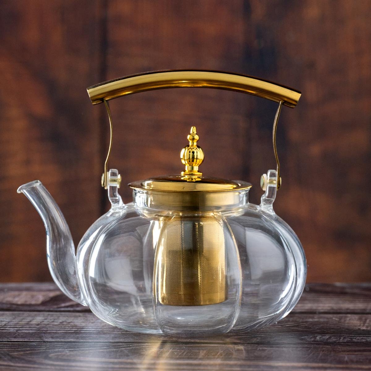 ليس مجرد إبريق شاي بل قطعة ديكور تلفت الأنظار مع إبريق شاي زجاجي بمقبض ذهبي ومرشح