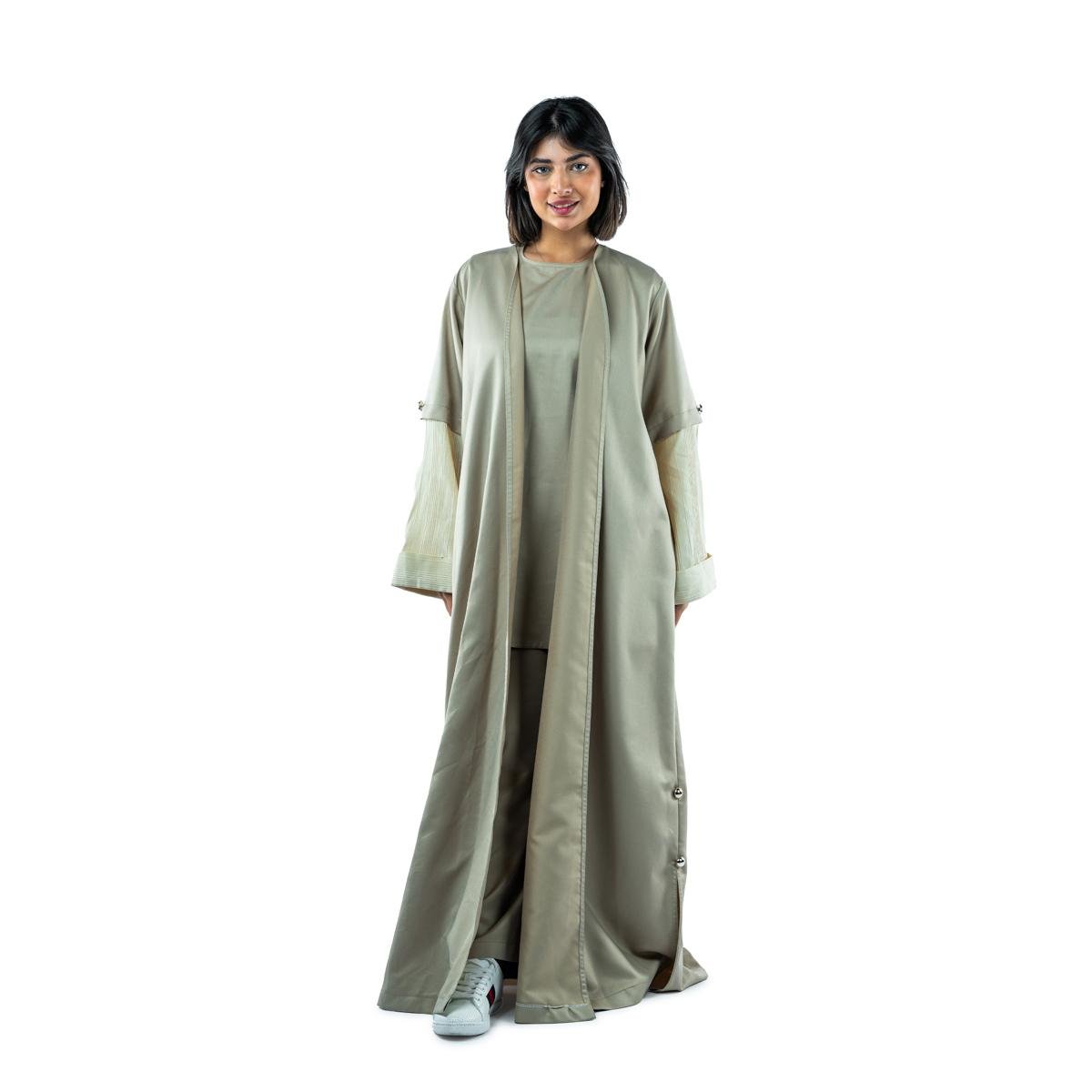 عباءة الرمال المزينة بالأزرار الرقيقة ارتقي بإطلالتك مع "عباءة الرمال المزينة بالأزرار الرقيقة". تم تصميم هذه العباءة بأناقة فائقة، مع أزرار مزخرفة على الجهة الأمامية تضيف لمسة من الرقي والجمال. القماش بلون الرمل يتدفق برشاقة، مما يمنحك إطلالة مريحة وأنيقة في آن واحد. سواء كنت تحضرين مناسبة رسمية أو تبحثين عن إضافة قطعة خالدة إلى خزانة ملابسك، فإن هذه العباءة هي الخيار المثالي.