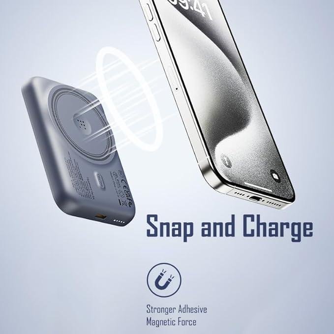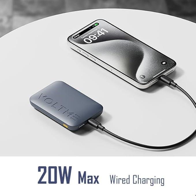 The VOLTME 5000mAh magsafe Power Bank is the ideal portable charger, offering fast charging for your iPhone 15 Pro Max, 14/13/12 series, and Samsung S24 Ultra. This compact power bank is also a MagSafe charger, magnetic portable charger, and a perfect companion for your phone, providing efficient charging on the go.Designed with strong MagSafe compatibility, this portable charger snaps onto your iPhone effortlessly, turning it into a magnetic power bank. Whether you need a wireless charger for iPhone or a magnetic charger for Android, this battery pack has you covered with its superior wireless charging capabilities.Charge two devices at once with this versatile power bank for iPhone. Equipped with USB-C fast charging and MagSafe wireless charging, it’s the ultimate portable phone charger, battery bank, and power bank fast charging solution for anyone who needs reliable power on the move.Featuring a flame-retardant casing, high-density polymer batteries, and intelligent circuitry, this power bank ensures your devices are safe while charging. The ultra-mini size and anti-slip TPU coating make it a secure and portable iPhone charger, whether you’re using it as a MagSafe battery pack or a wireless portable charger.This portable charger power bank is not just a wireless charger for iPhone; it’s a comprehensive charging solution. With its magnetic power bank functionality, it serves as a MagSafe portable charger and magnetic wireless charger for iPhone 15 Pro Max, making it a must-have in your collection of MagSafe accessories and portable power solutions