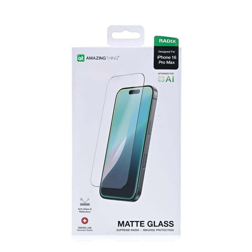 عزز جهاز iPhone 16 Pro Max الخاص بك باستخدام زجاج Radix غير اللامع المغطى بالكامل من Amazing Thing 2.75D. يتميز واقي الشاشة الشفاف هذا بلمسة نهائية غير لامعة لتقليل الوهج والحماية من الحافة إلى الحافة ، ويضمن المتانة ومقاومة الخدش وسطح أملس مضاد لبصمات الأصابع.