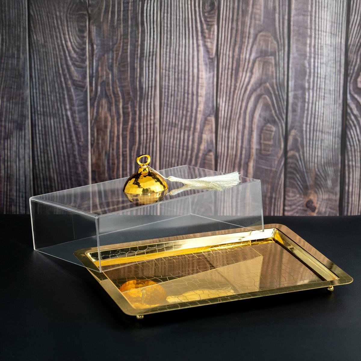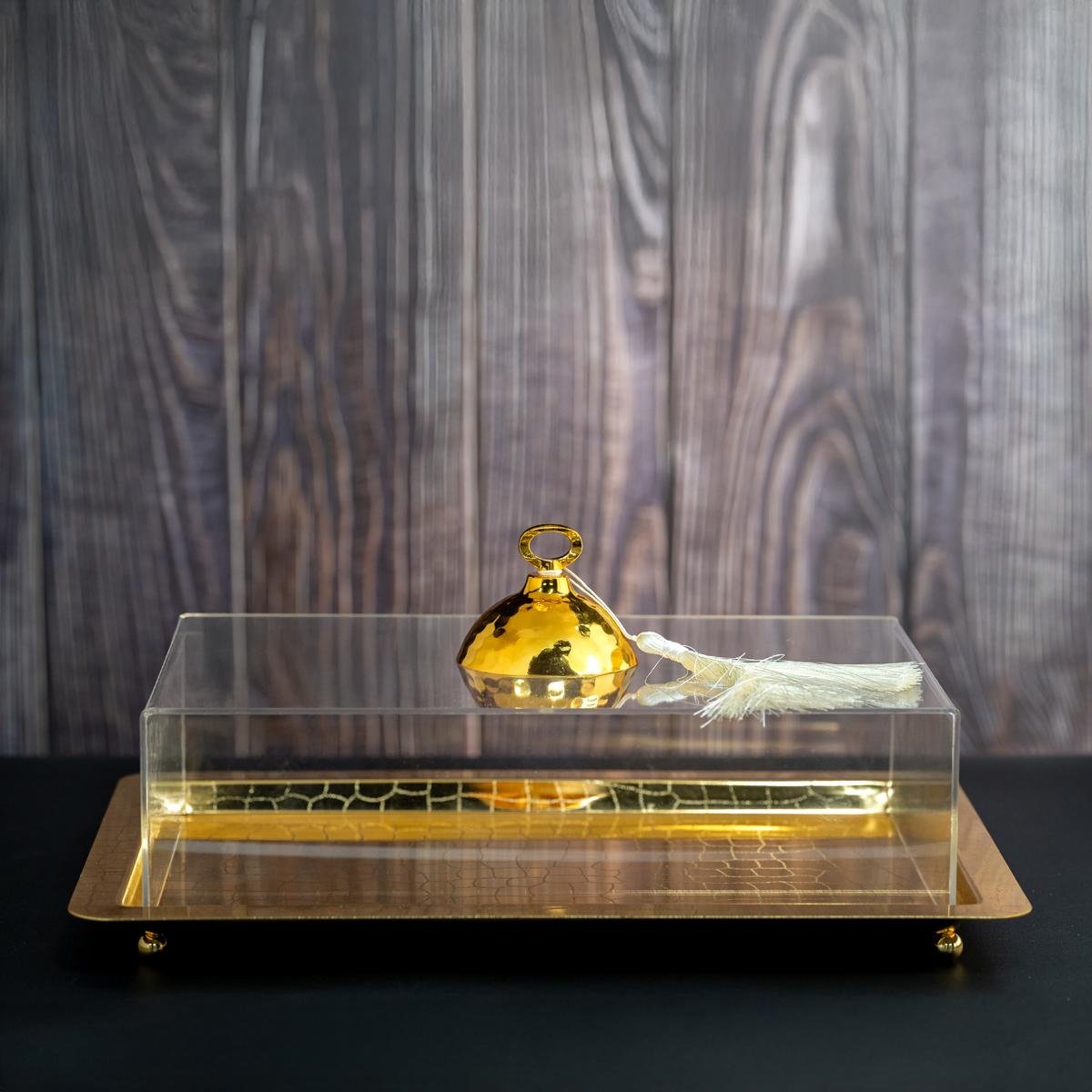 تجمع صينية التقديم الفاخرة بغطاء أكريليك شفاف بين التصميم الأنيق والوظائف العملية، مما يجعلها مثالية لتقديم الحلويات، الفواكه، أو المشروبات بأسلوب راقٍ وجذاب. مصنوعة من مواد عالية الجودة، توفر هذه الصينية متانة وجمالًا استثنائيًا، مما يجعلها إضافة رائعة لأي مناسبة.