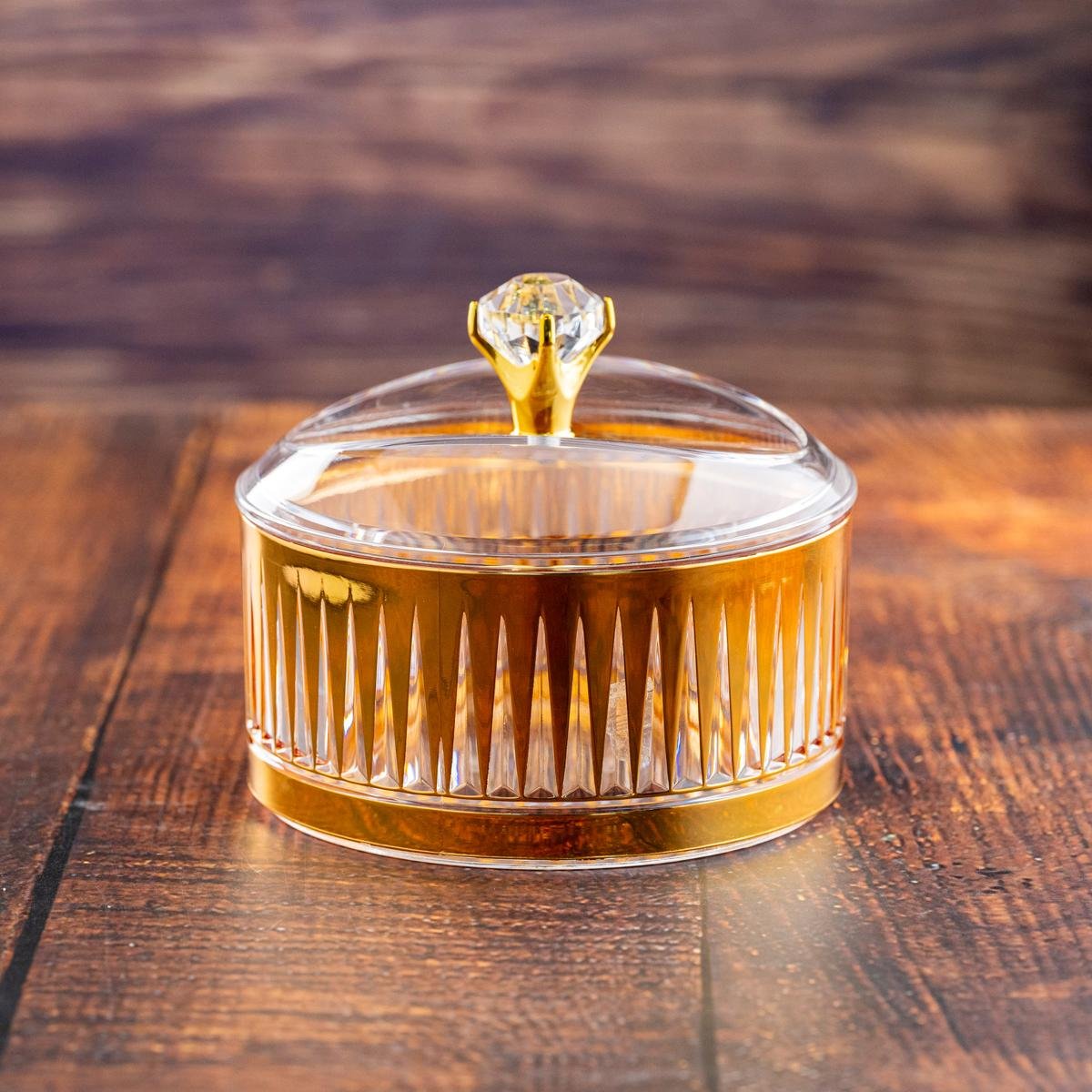 أضفي لمسة من الأناقة إلى ديكور منزلك أو حفلاتك مع وعاء الحلوى الفاخر من الأكريليك. يتميز بتصميم ماسي لامع ومقبض غطاء يشبه الكريستال، مما يجعله ليس فقط عمليًا ولكن أيضًا تحفة فنية تلفت الأنظار. مثالي لعرض الحلوى، المكسرات، أو حتى كقطعة ديكور، فهو يضفي لمسة من الفخامة على أي مكان.