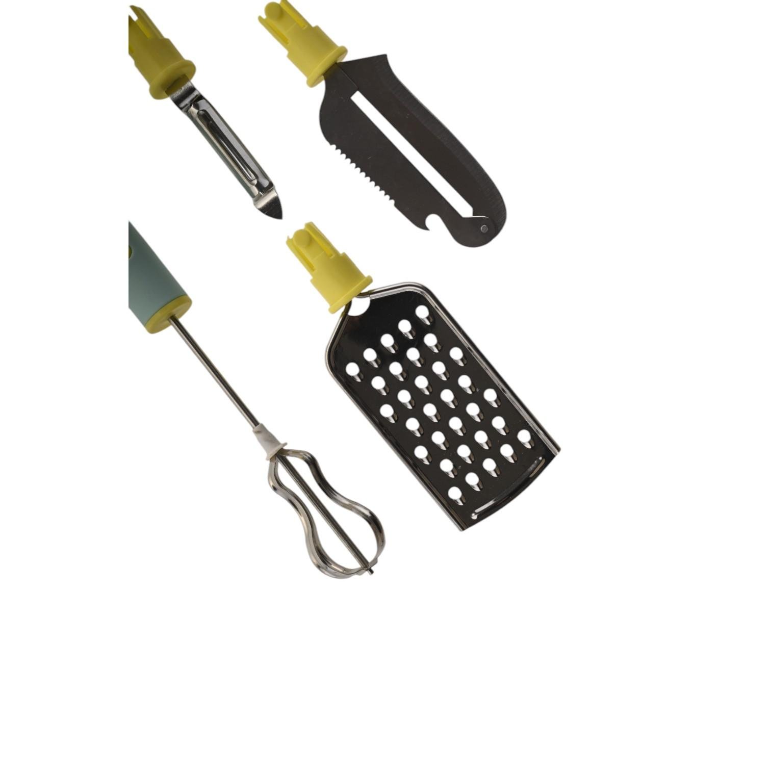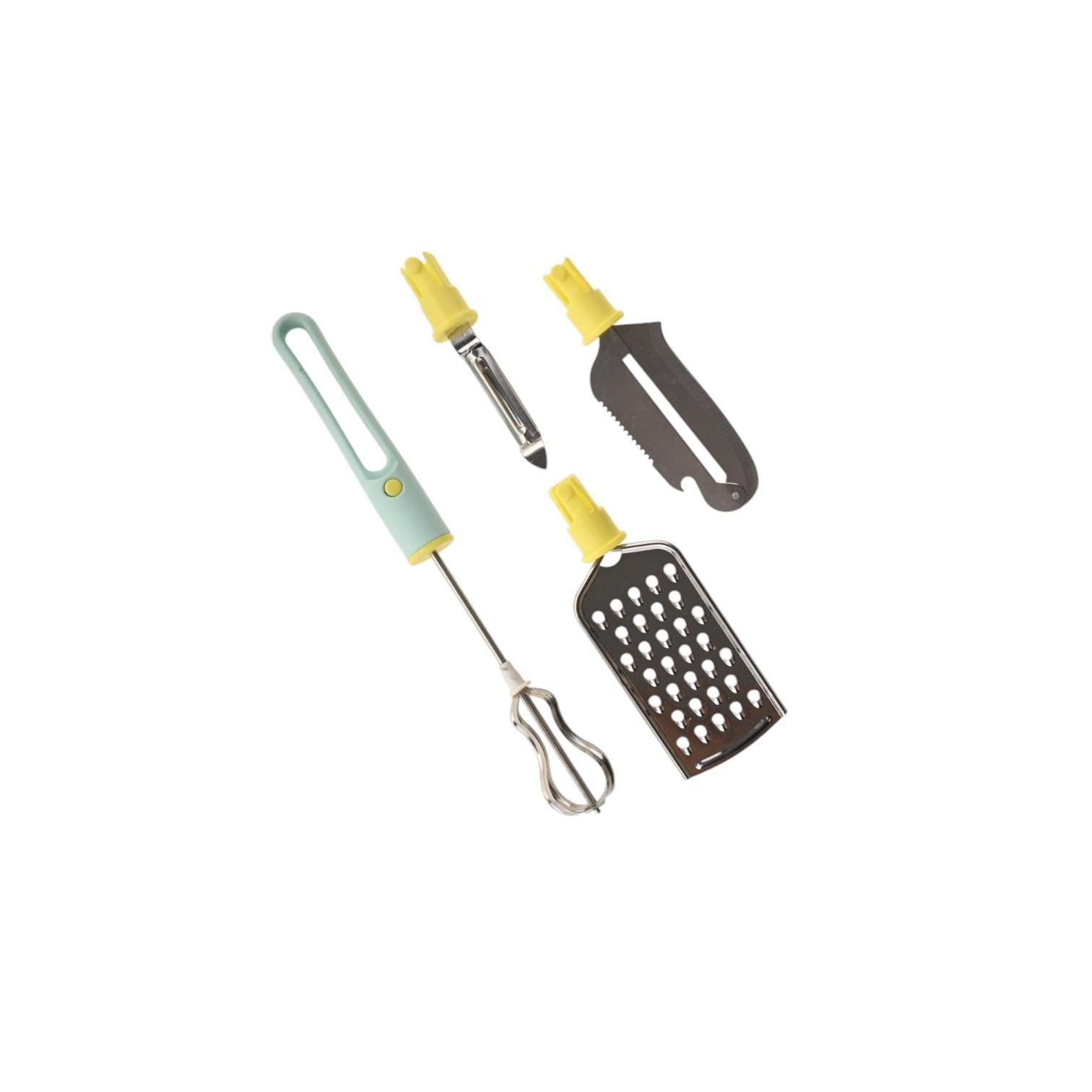 مجموعة أدوات المطبخ متعددة الوظائف تجمع بين عدة أدوات مطبخ أساسية في أداة واحدة مدمجة ومريحة. يمكن أن تشمل هذه الأدوات مثل مقشرات الخضروات، والمبشرات، وفتاحات الزجاجات، وغيرها، مما يوفر المساحة ويسهل مهام تحضير الطعام المختلفة.