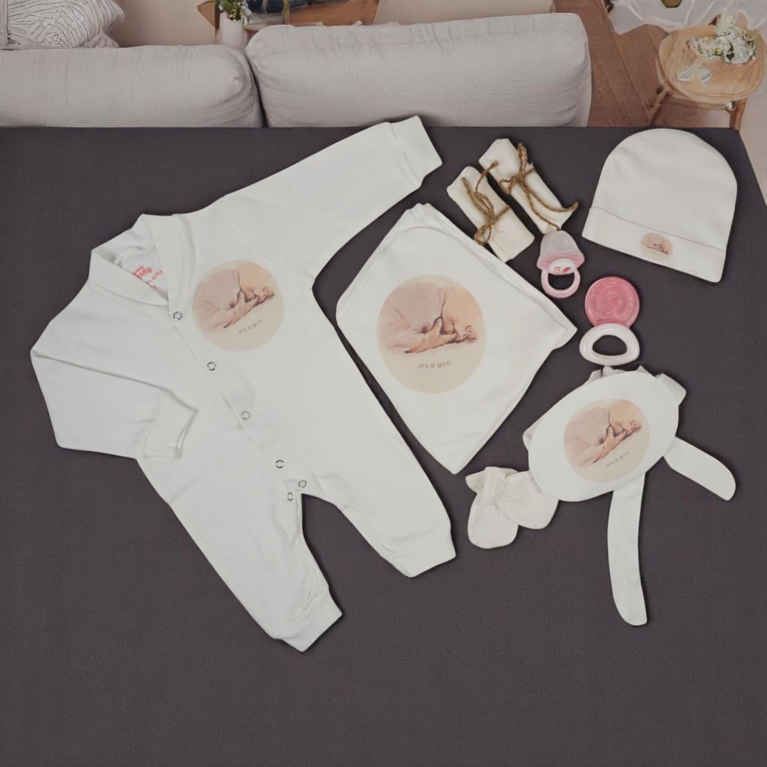 طقم متكامل: يشمل باديهات، قفازات، جوارب، قبعة ناعمة، مريلة، بطانية وأكثر.