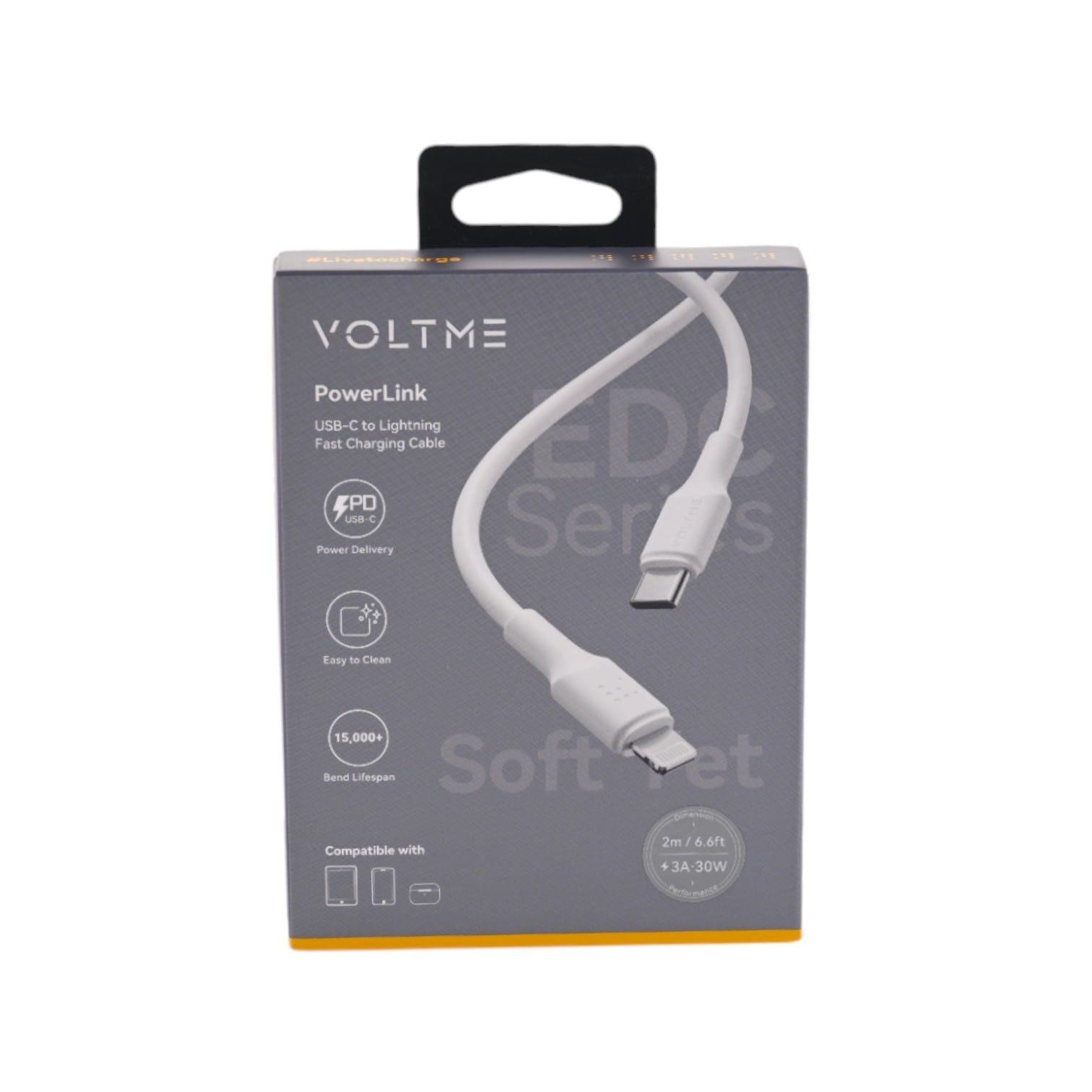 اشحن أجهزتك بسرعة وكفاءة باستخدام كابل VoltME PowerLink EDC Series. مع واجهة Type-C إلى Lightning ، وتوصيل طاقة 3A ، وشحن سريع 30 واط ، يضمن هذا الكابل 2.0M أداء موثوقا وسريعا لجميع الأجهزة المتوافقة.