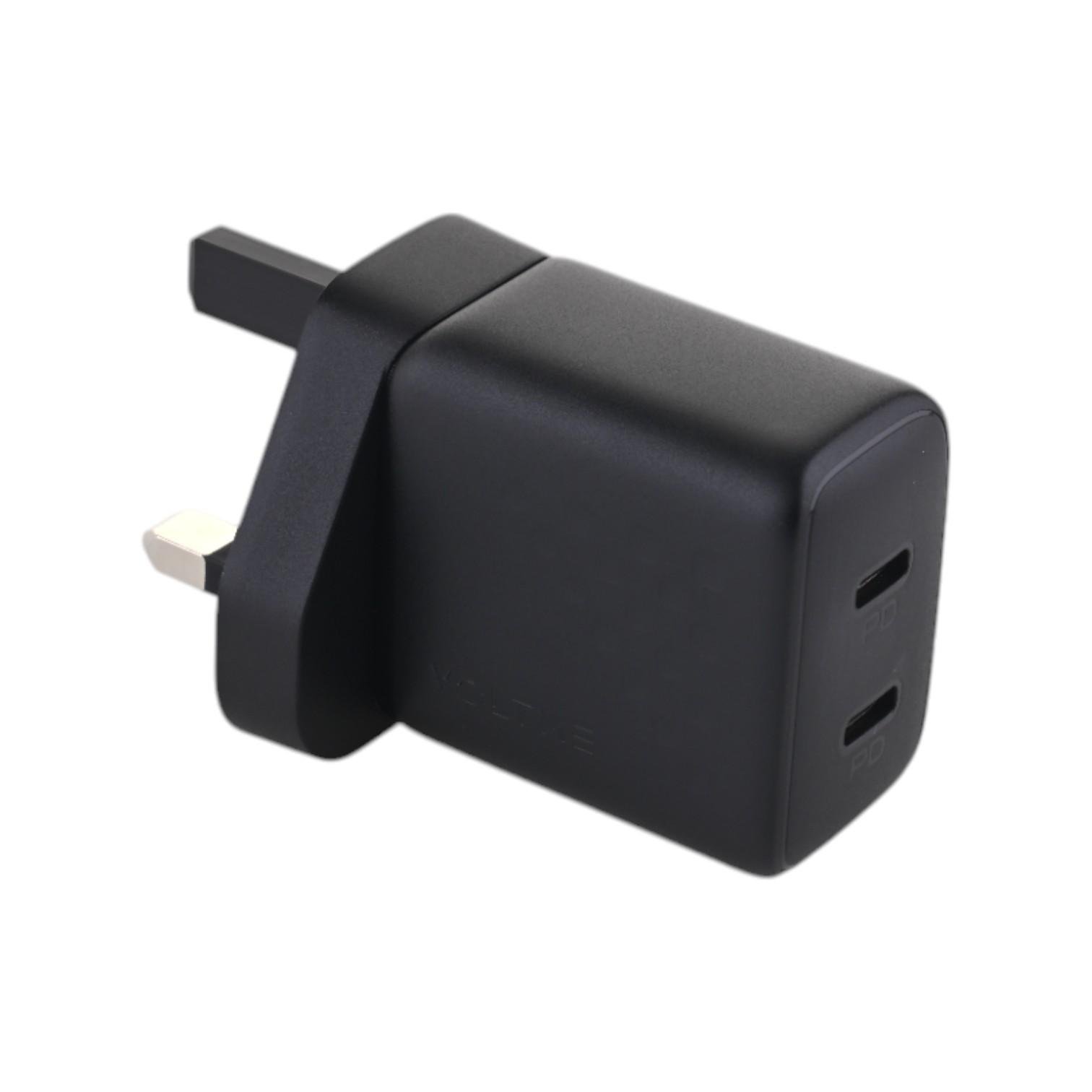 قم بتشغيل أجهزتك باستخدام شاحن الحائط VoltME Revo 35 Duo Light باللون الأسود. يوفر الشحن السريع بقوة 35 واط ووظائف المنفذ المزدوج ، وهو حل الشحن المثالي للمنزل أو المكتب أو السفر.