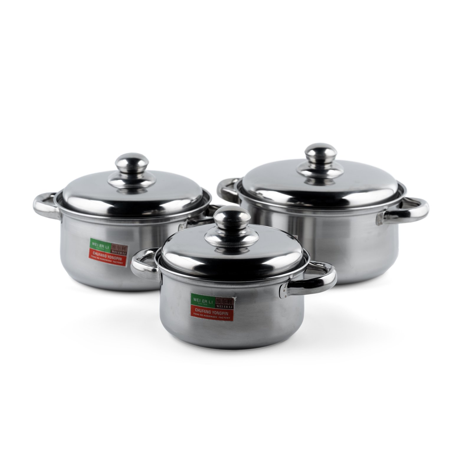 مجموعة قدور ستانلس ستيل عالية الجودة – متينة، غير لاصقة، ومثالية لكل مطبخ حوّلي تجربة الطهي مع مجموعة القدور المصنوعة من الستانلس ستيل الفاخرة! مصنوعة من مواد عالية الجودة وآمنة للطعام، هذه المجموعة مصممة لتدوم وتجعل وقتك في المطبخ أكثر سهولة. سواء كنتِ تطهين الحساء، أو تغليين الماء، أو تقلين الخضار، هذه القدور توفر توزيعًا متساويًا للحرارة لنتائج طهي مثالية في كل مرة. التصميم الأنيق والحديث يتناسب مع أي ديكور مطبخ، مما يجعلها عصرية وأنيقة في نفس الوقت.