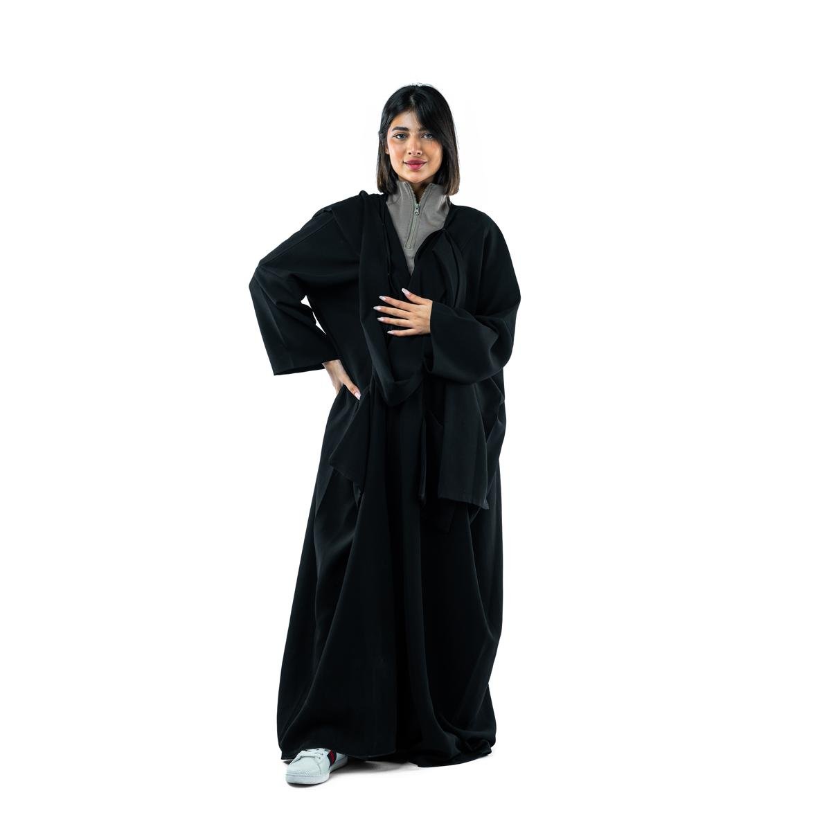 Elevate your wardrobe with the Midnight Drape Abaya, which combines classic elegance with modern chic. It features front layers that add depth and movement, with a flowing silhouette that gives you an elegant look for all occasions. Perfect for evening parties, formal events, or a chic everyday look.