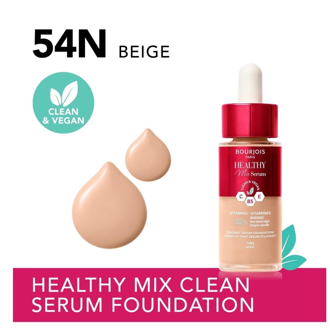 Achieve a fresh, naturally radiant look with Bourjois Healthy Mix Serum Foundation in shade 54N Beige.